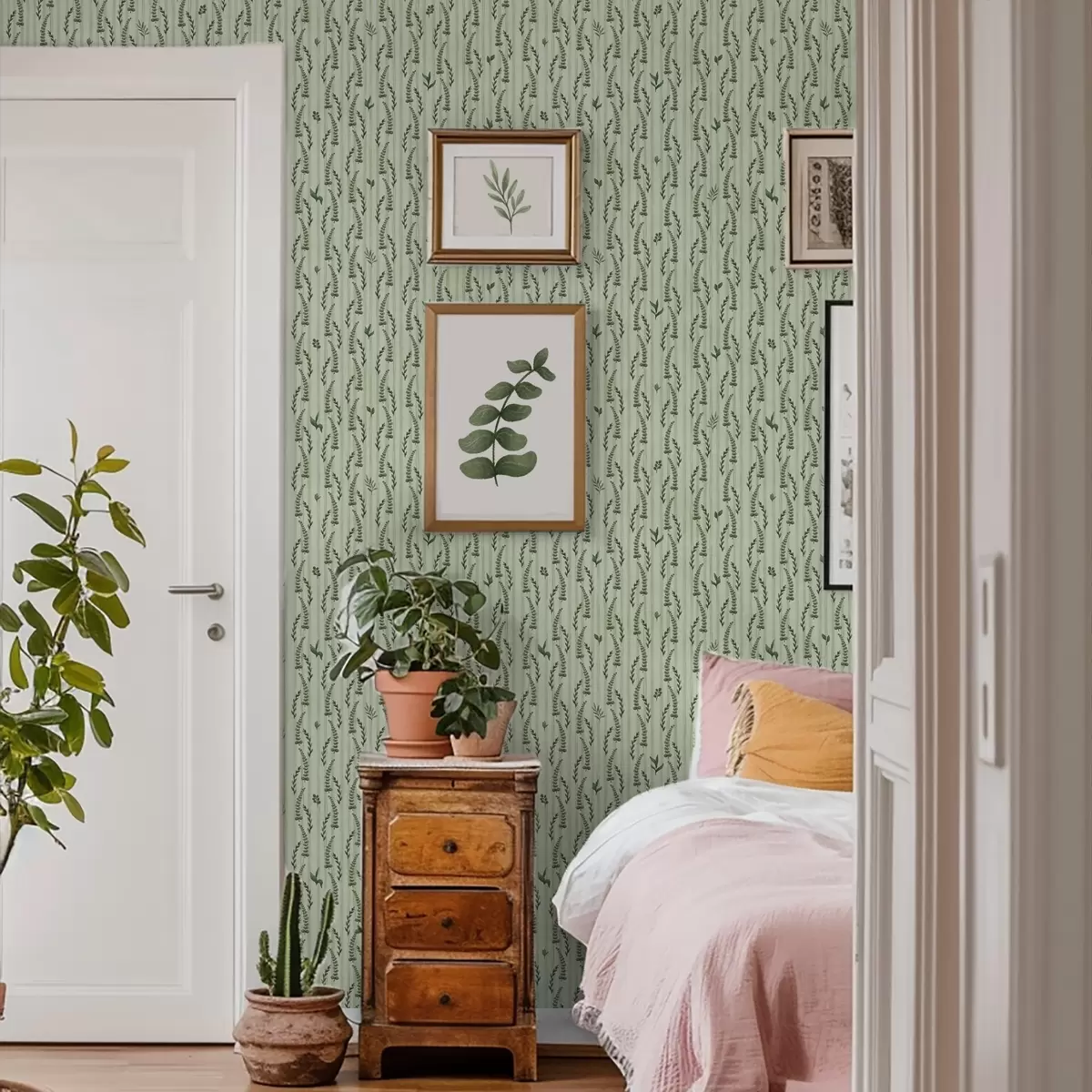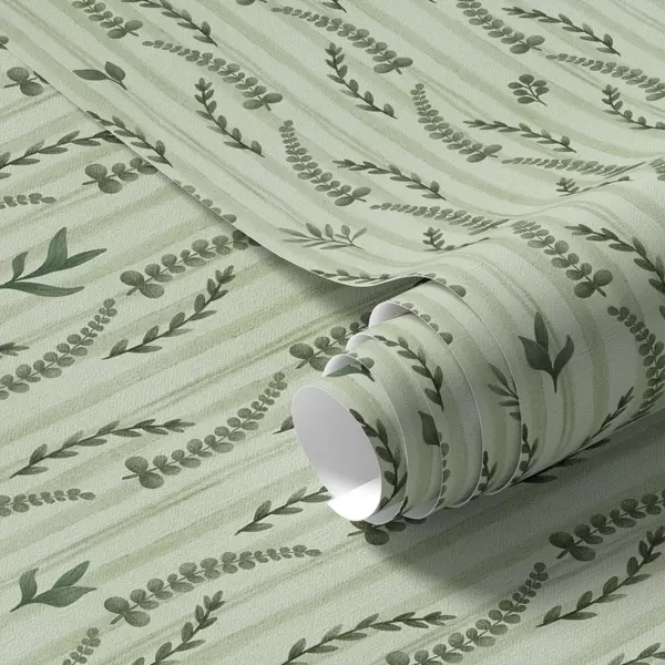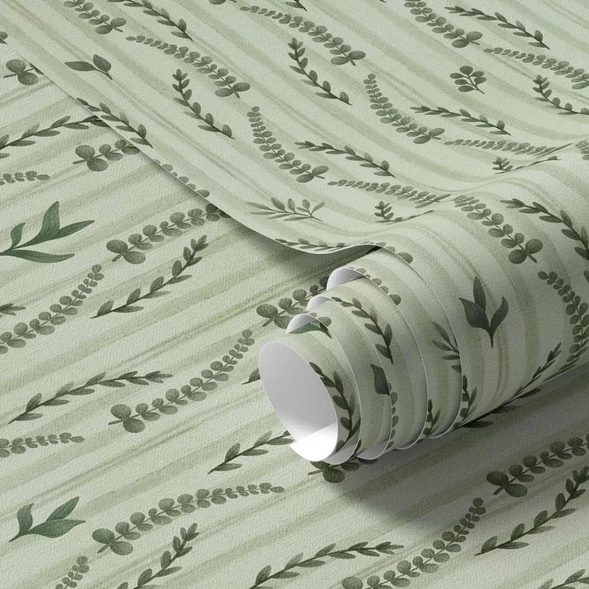 Carta da parati Erba verde fitta e germogli su menta con strisce Nr. a00819