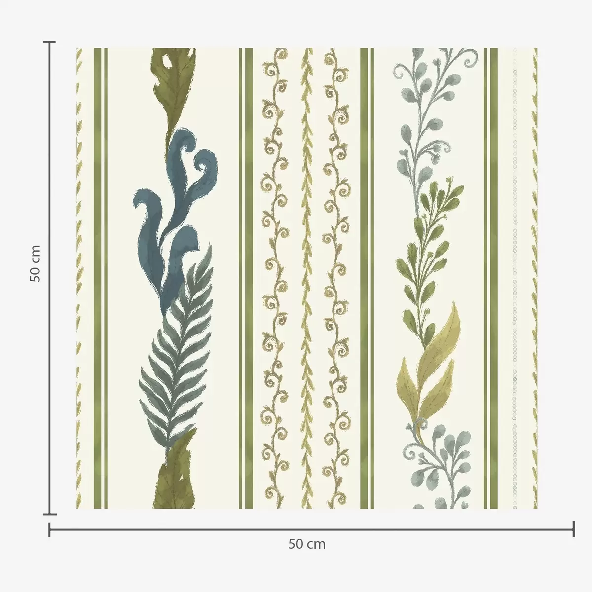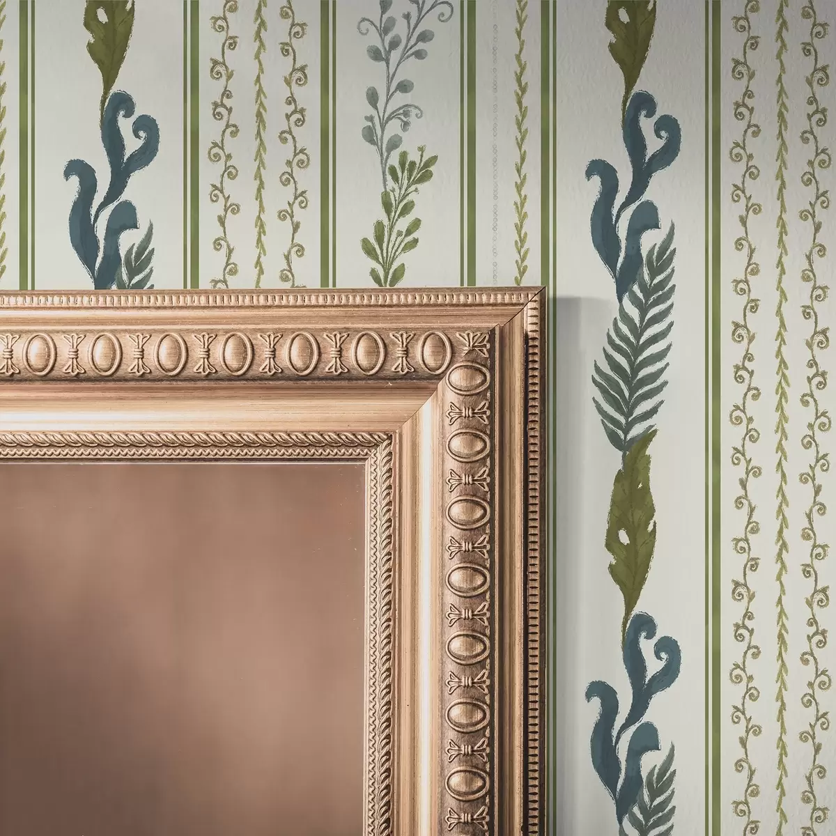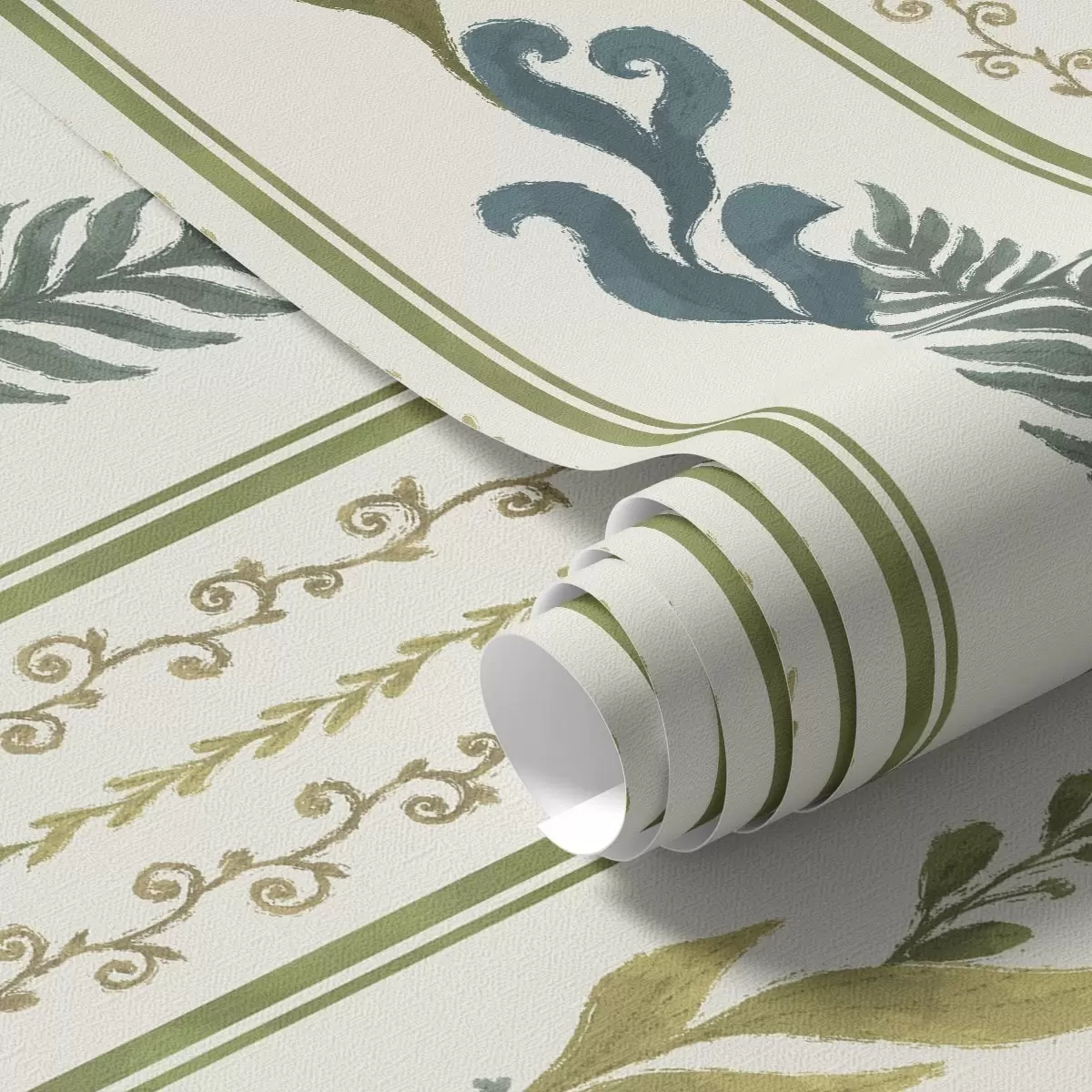 Carta da parati Strisce con ornamenti a volute e grandi rami verdi Nr. a00823
