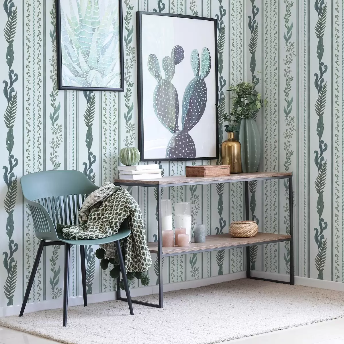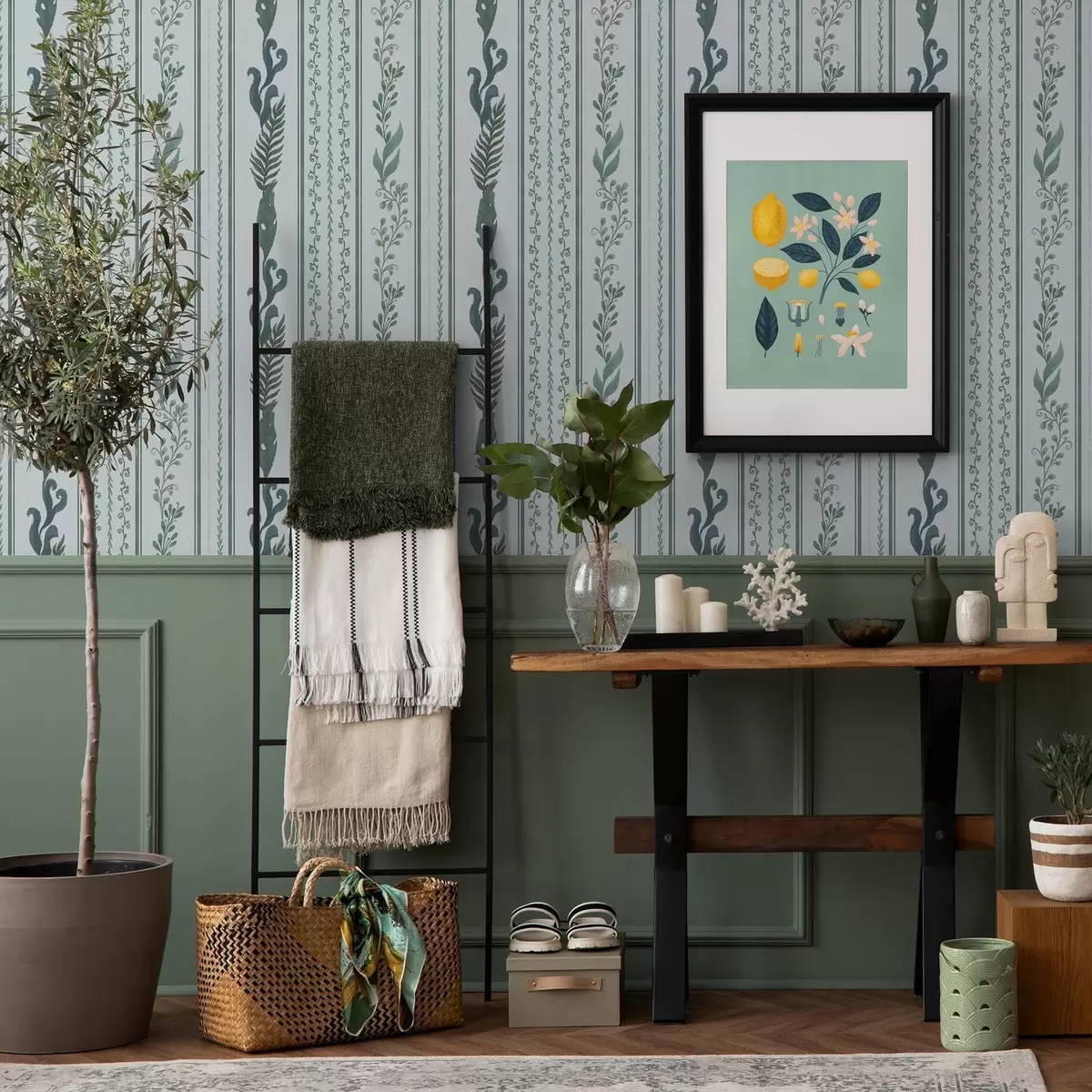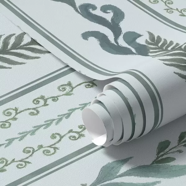Carta da parati Righe con rami e riccioli su sfondo azzurro freddo Nr. a00823v1