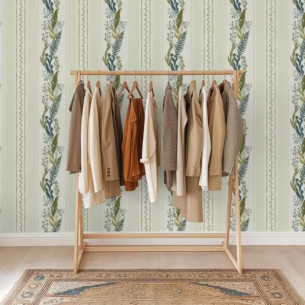 Carta da parati Ampie strisce con rami pittorici nei toni blu-oliva Nr. a00825