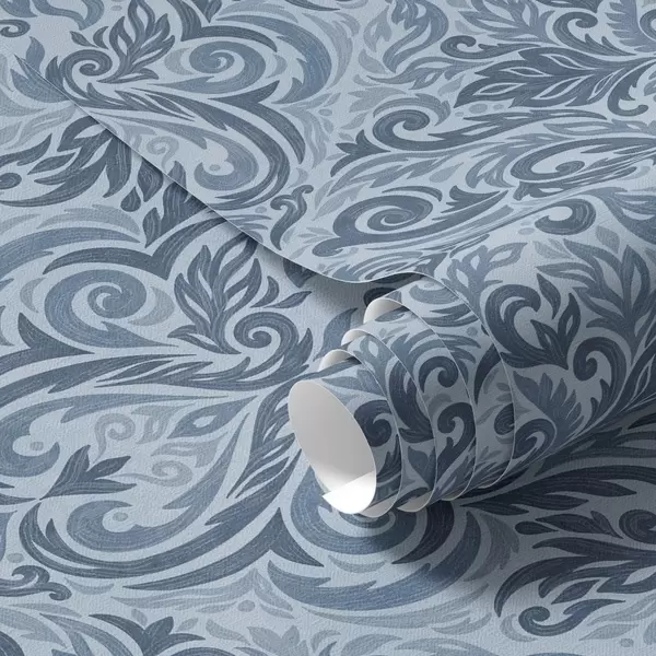 Carta da parati Damasco nei toni freddi del blu, contrasto più forte Nr. a00826v2