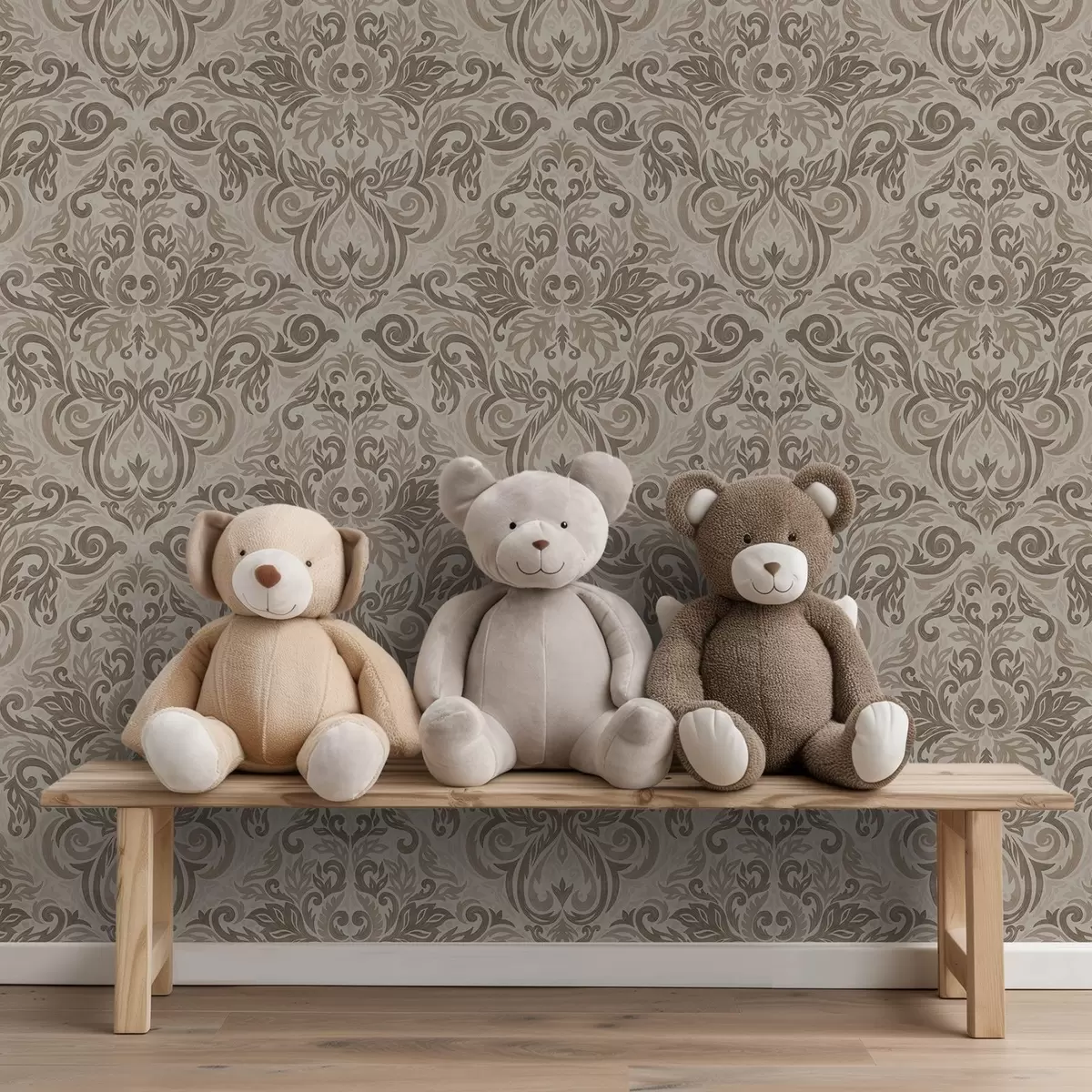 Carta da parati Damasco in calde tonalità grigio-marroni su fondo chiaro Nr. a00826v3