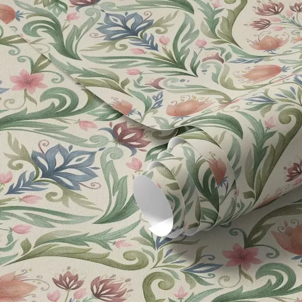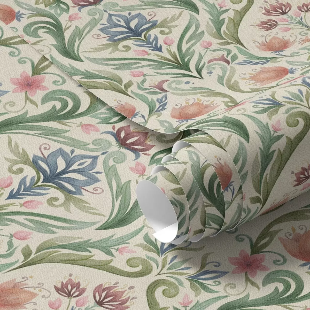 Carta da parati Ornamento floreale simmetrico, terracotta e verde Nr. a00827