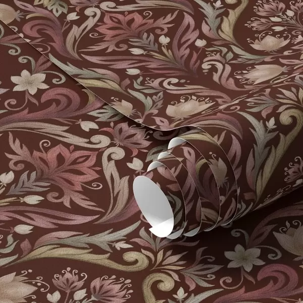 Carta da parati Ornamento a tulipano, ricco sfondo bordeaux Nr. a00827v2