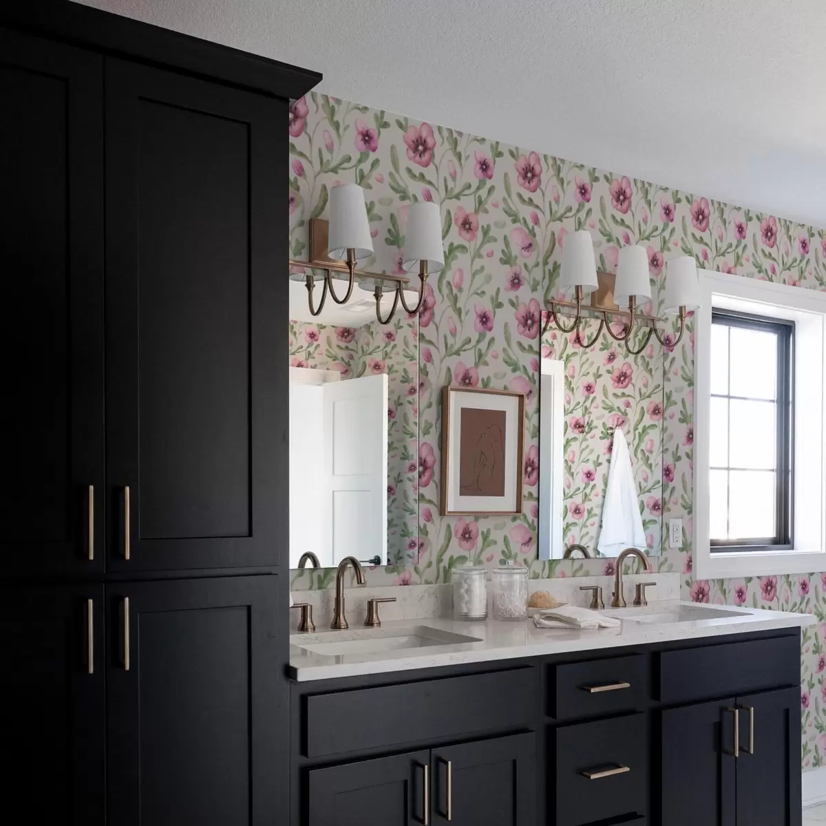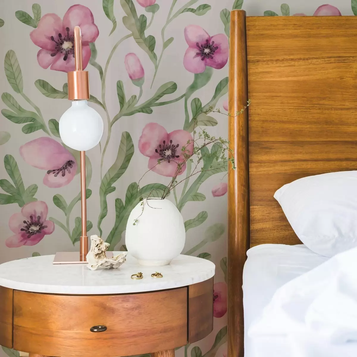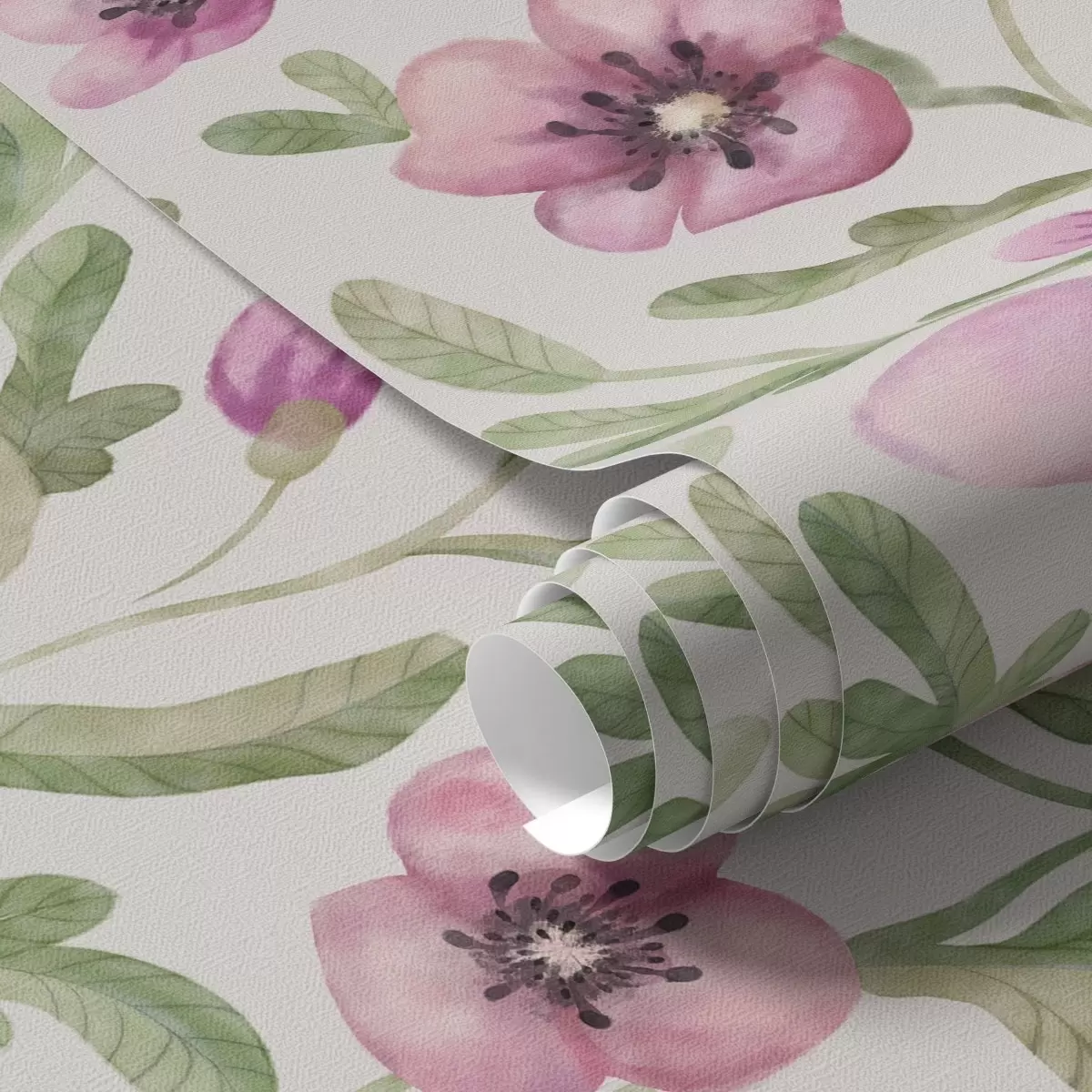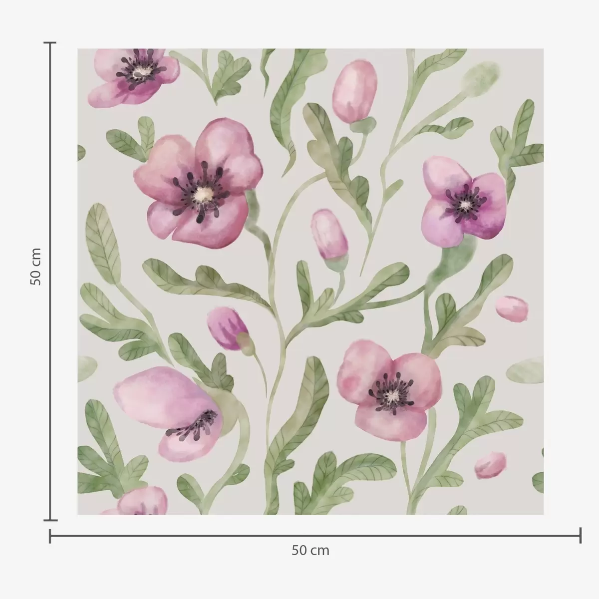Carta da parati Delicati papaveri rosa con foglie realizzati con la tecnica dell'acquerello Nr. a00830