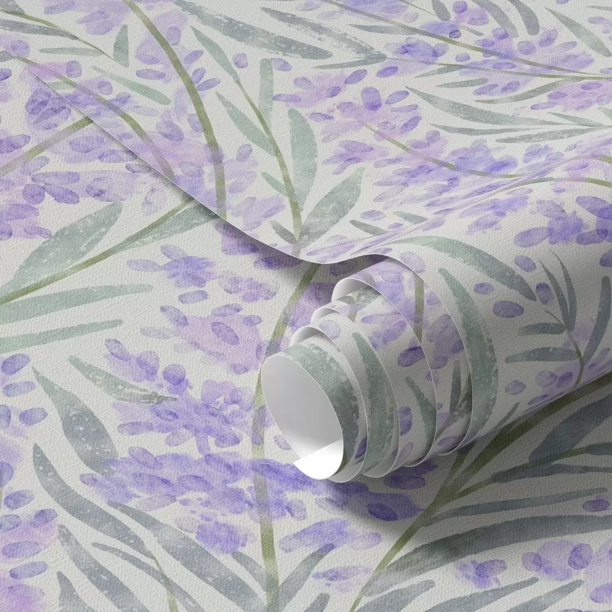 Carta da parati Rami di lavanda nei toni del viola su sfondo chiaro Nr. a00835