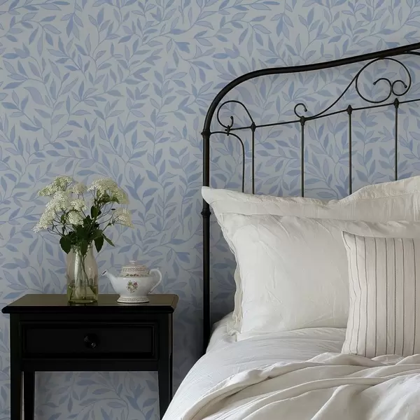 Carta da parati Ramoscelli blu con foglie su sfondo azzurro Nr. a00842