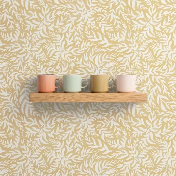 Carta da parati Motivo a foglie bianche su ocra caldo, ritmo vorticoso Nr. a00845