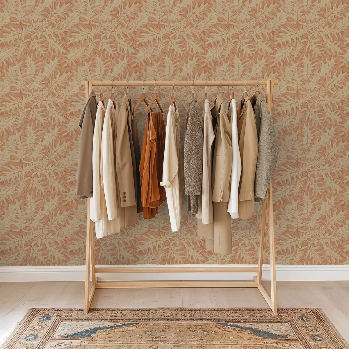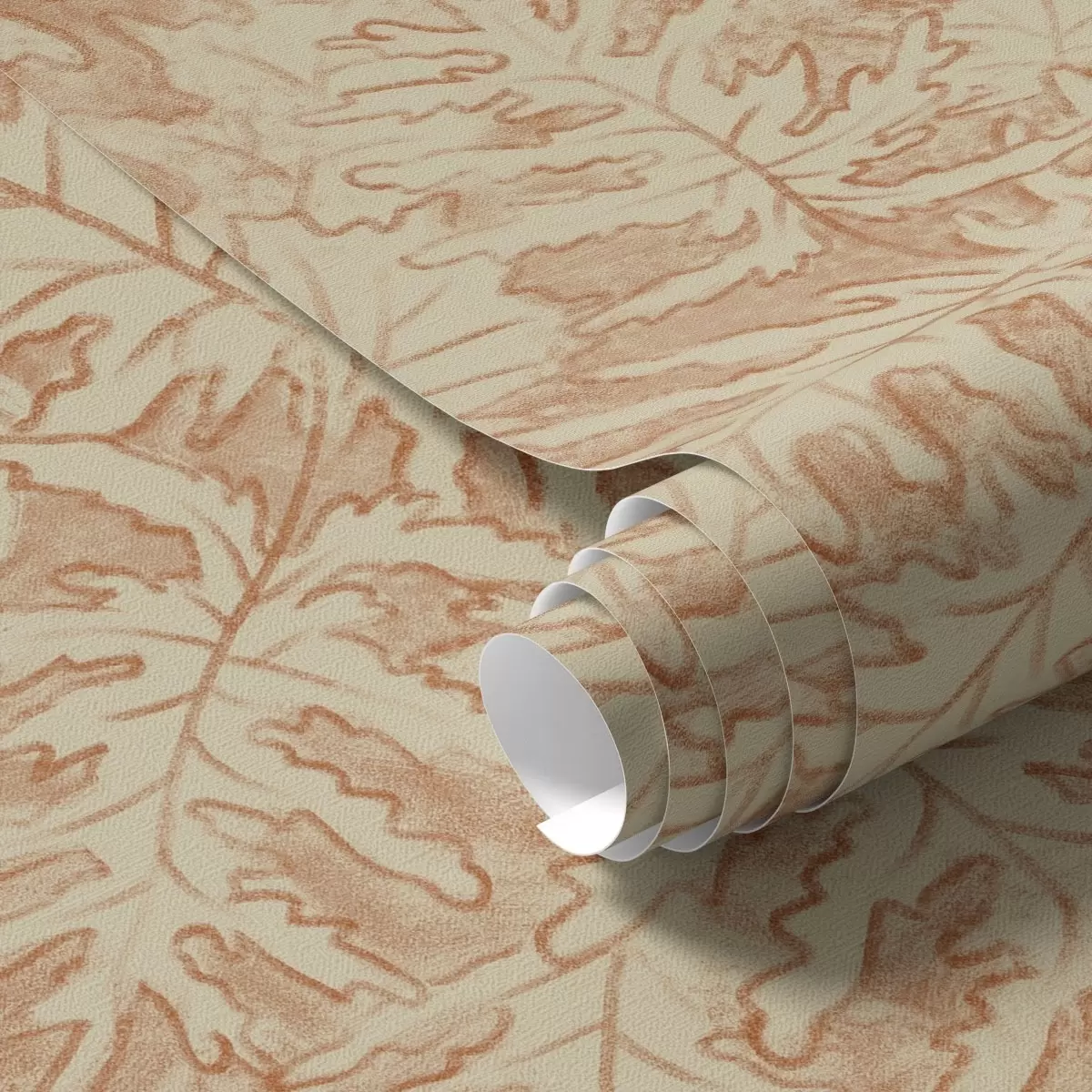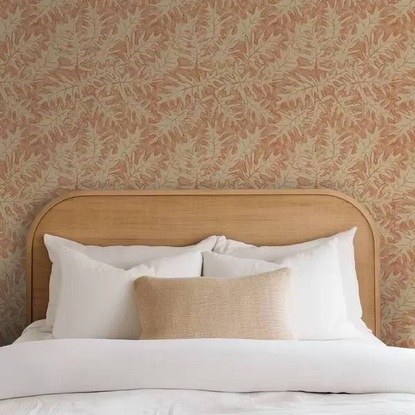 Carta da parati Grandi foglie di quercia in terracotta color crema Nr. a00846