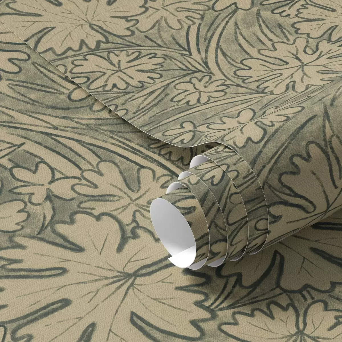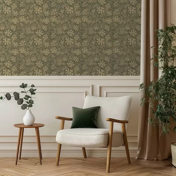 Carta da parati Foglie e erbe di campo nei toni del grigio-oliva Nr. a00847v1