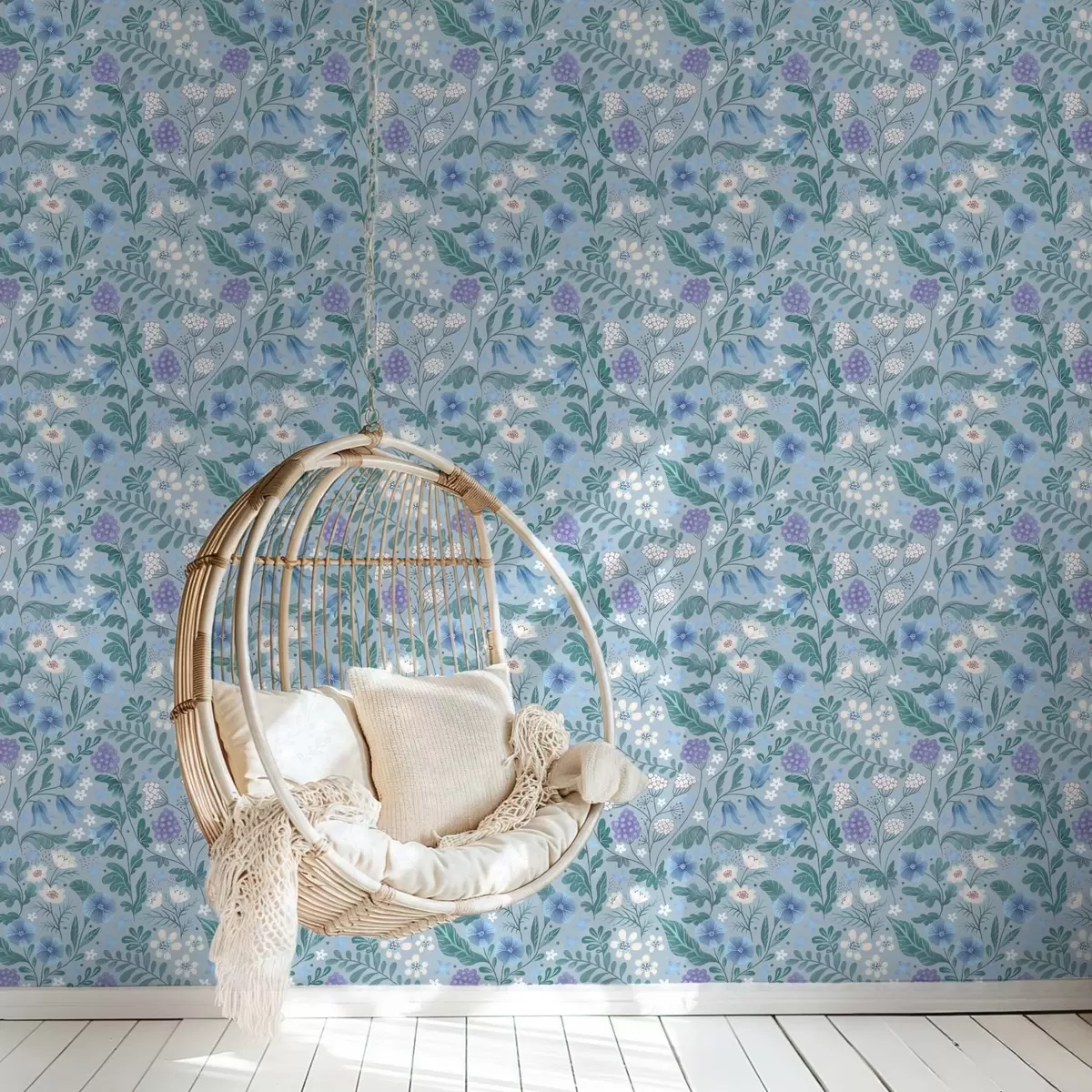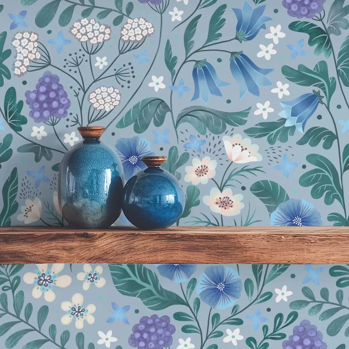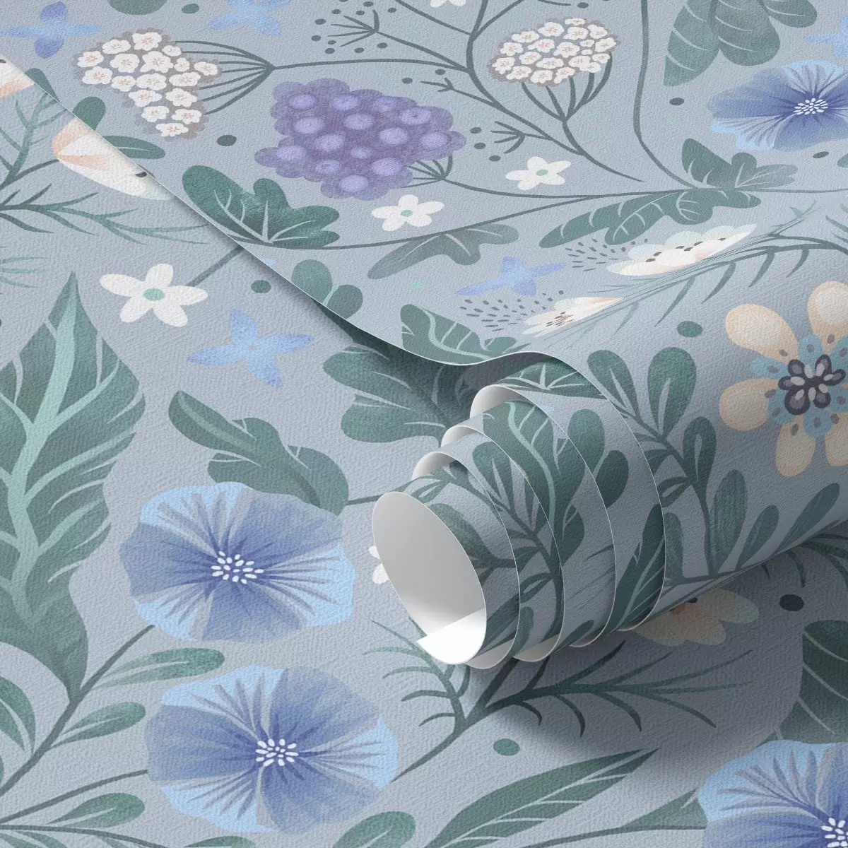 Carta da parati Fiori selvatici e bacche su sfondo grigio-blu Nr. a00849v1