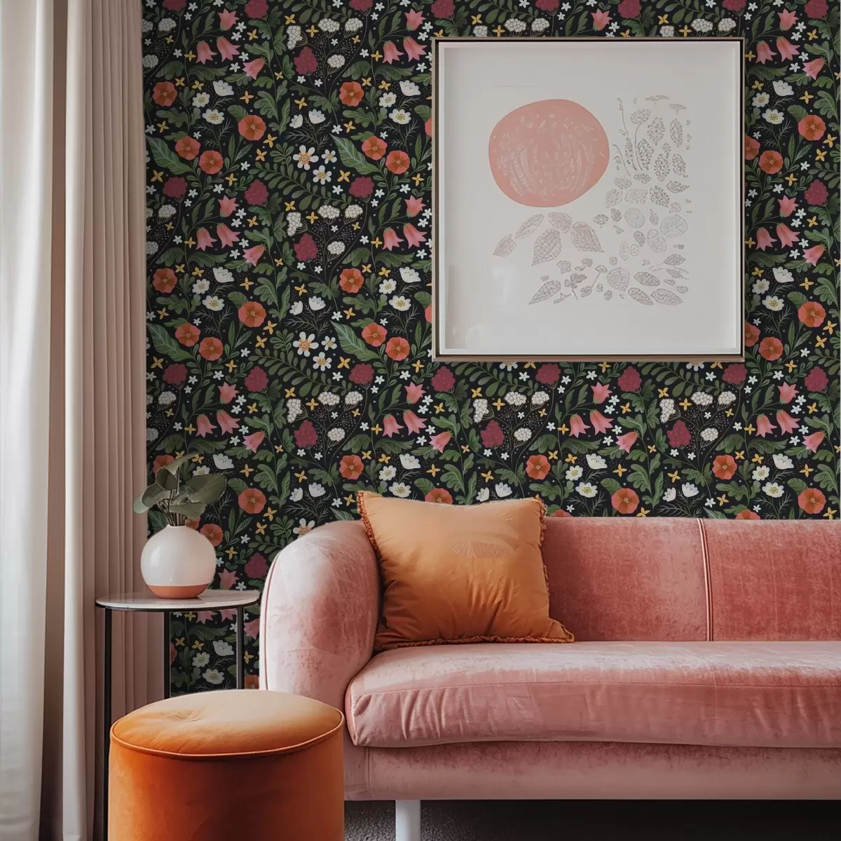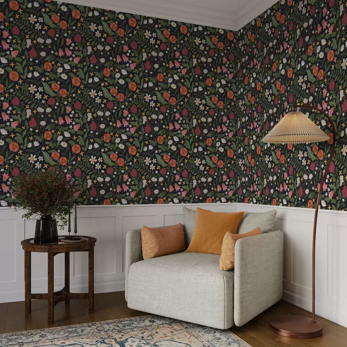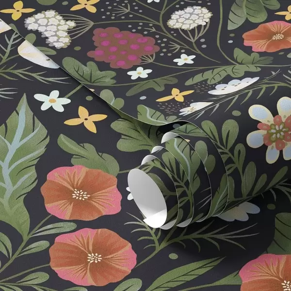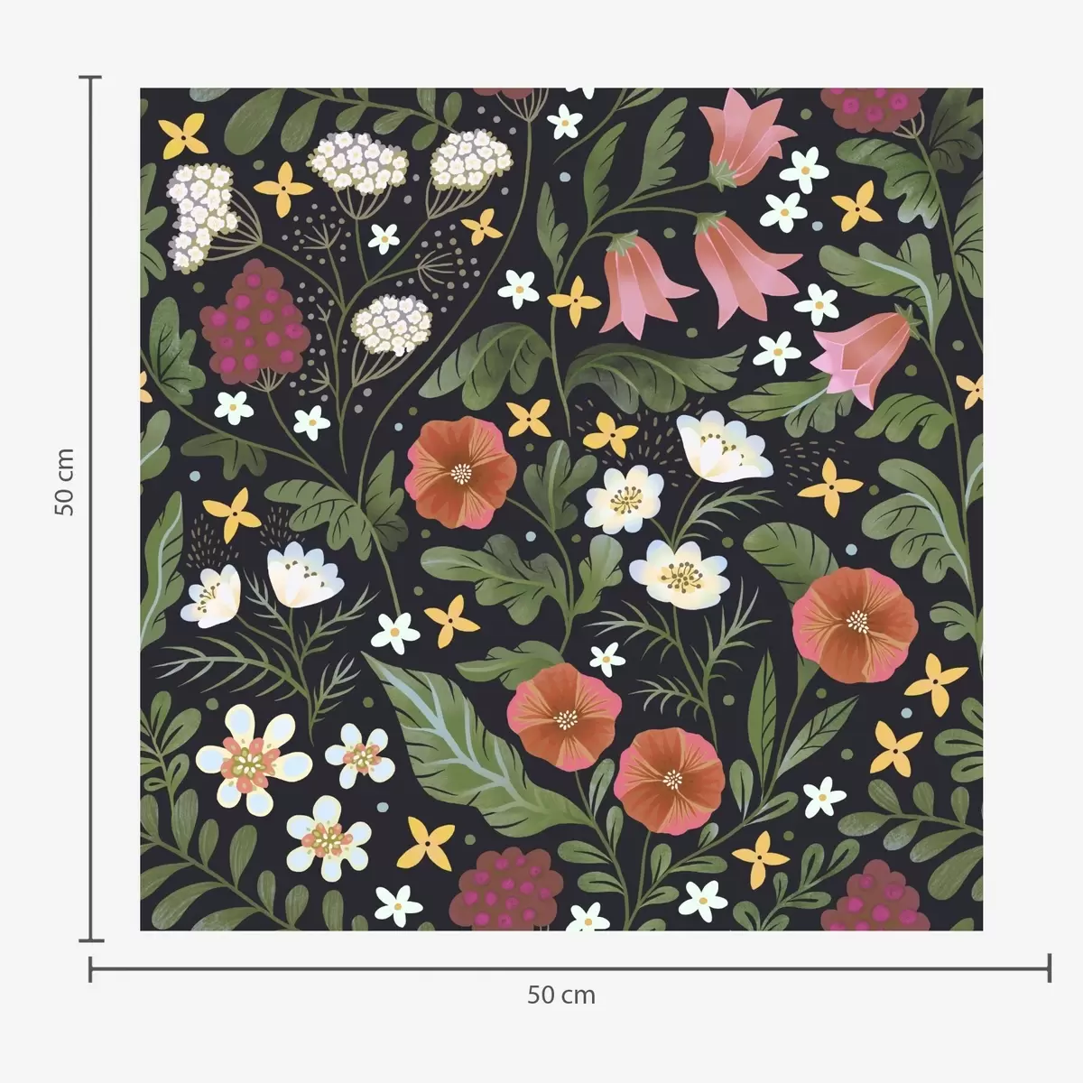 Carta da parati Fiori selvatici e bacche su sfondo nero intenso Nr. a00849v3