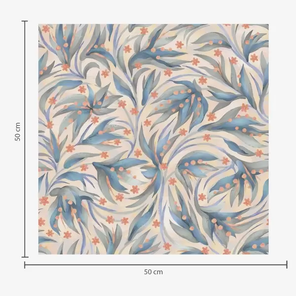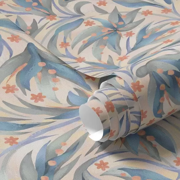 Carta da parati Fogliame blu astratto con fiori color corallo Nr. a00852