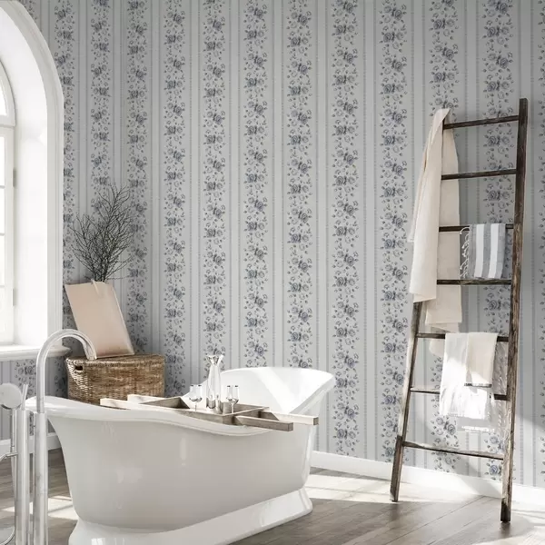 Carta da parati Rose blu disposte in bande verticali su sfondo chiaro Nr. a00860