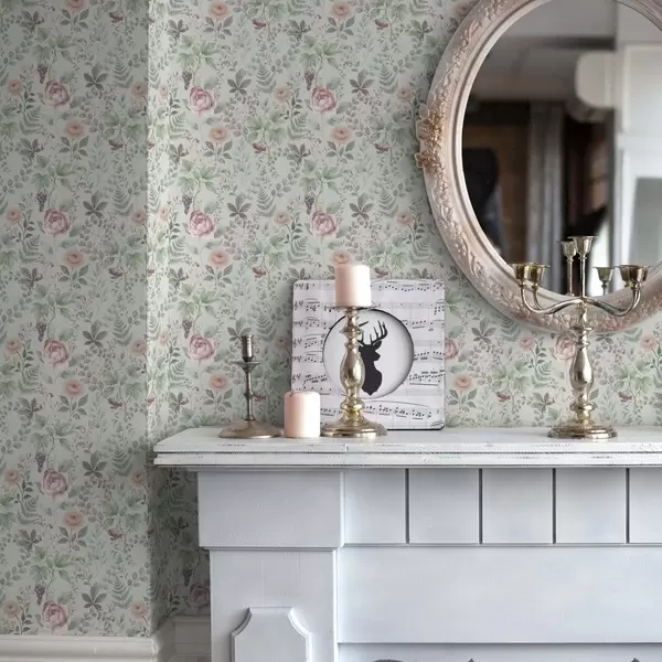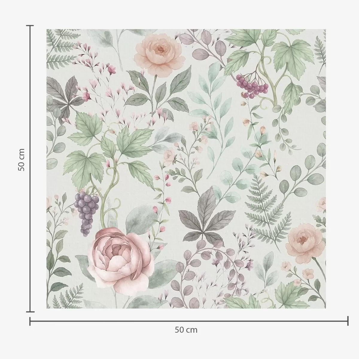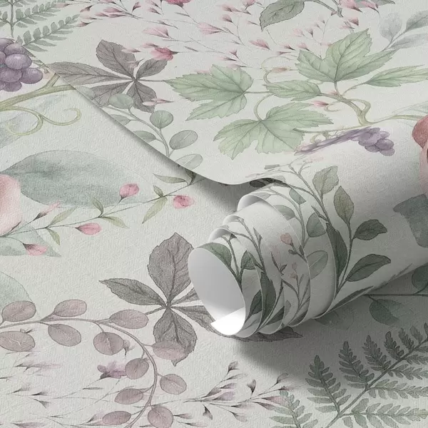 Carta da parati Giardino pastello con rose, felci e uva Nr. a00867