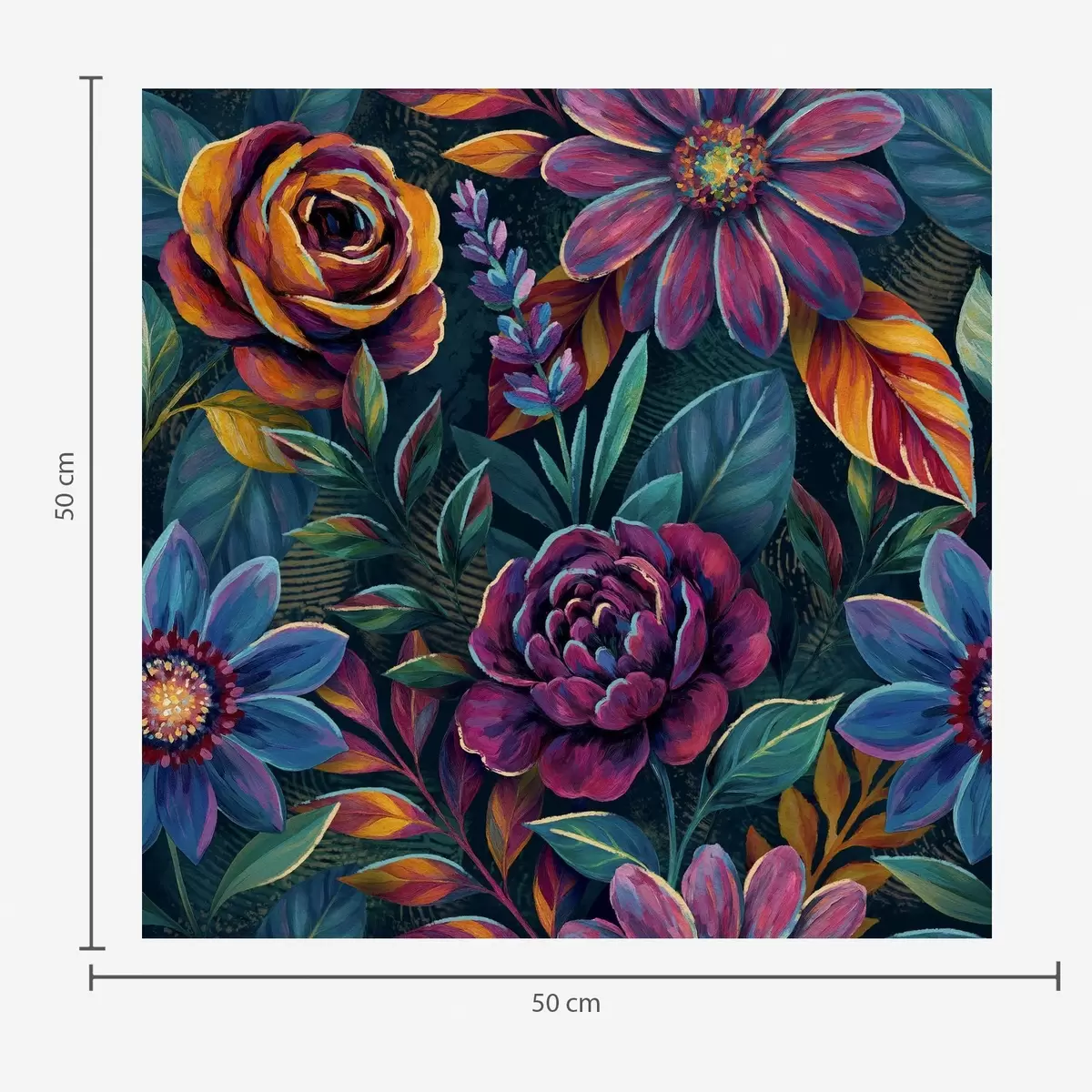 Carta da parati Fiori dai colori vivaci e brillanti su sfondo blu navy intenso Nr. a00871