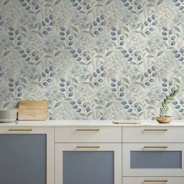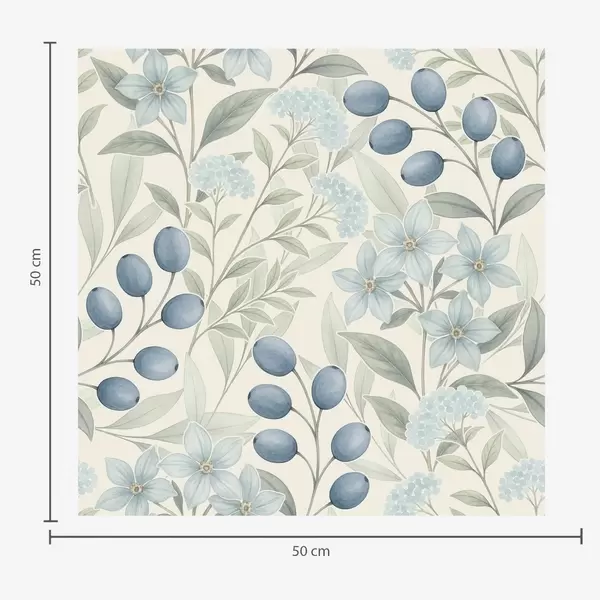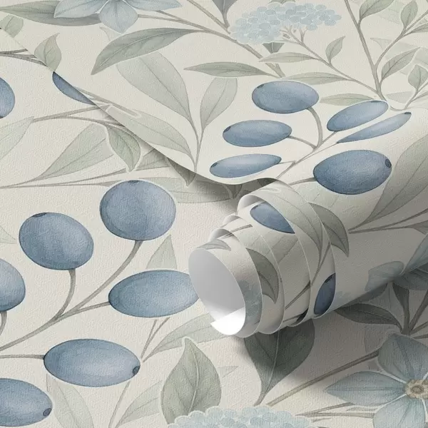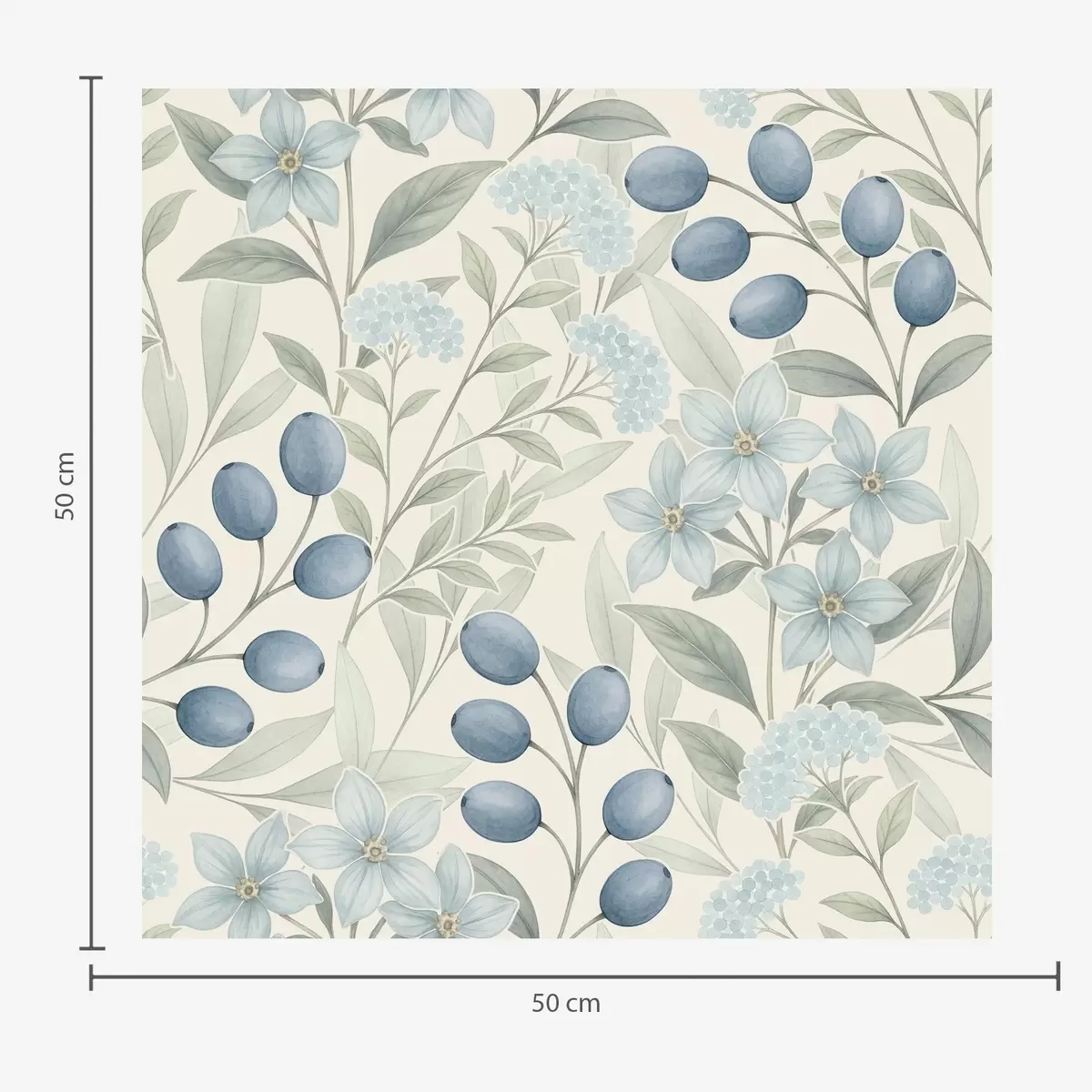 Carta da parati Mirtilli blu e fiori chiari su avorio Nr. a00872