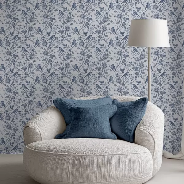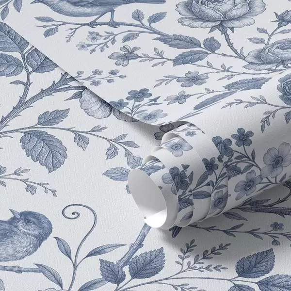 Carta da parati Uccelli e rose blu su fondo bianco Nr. a00873