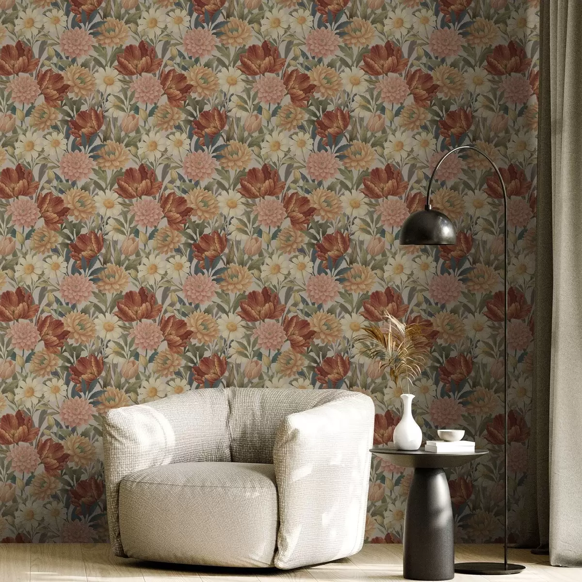 Carta da parati Giardino vintage in caldi toni terracotta e pesca Nr. a00874