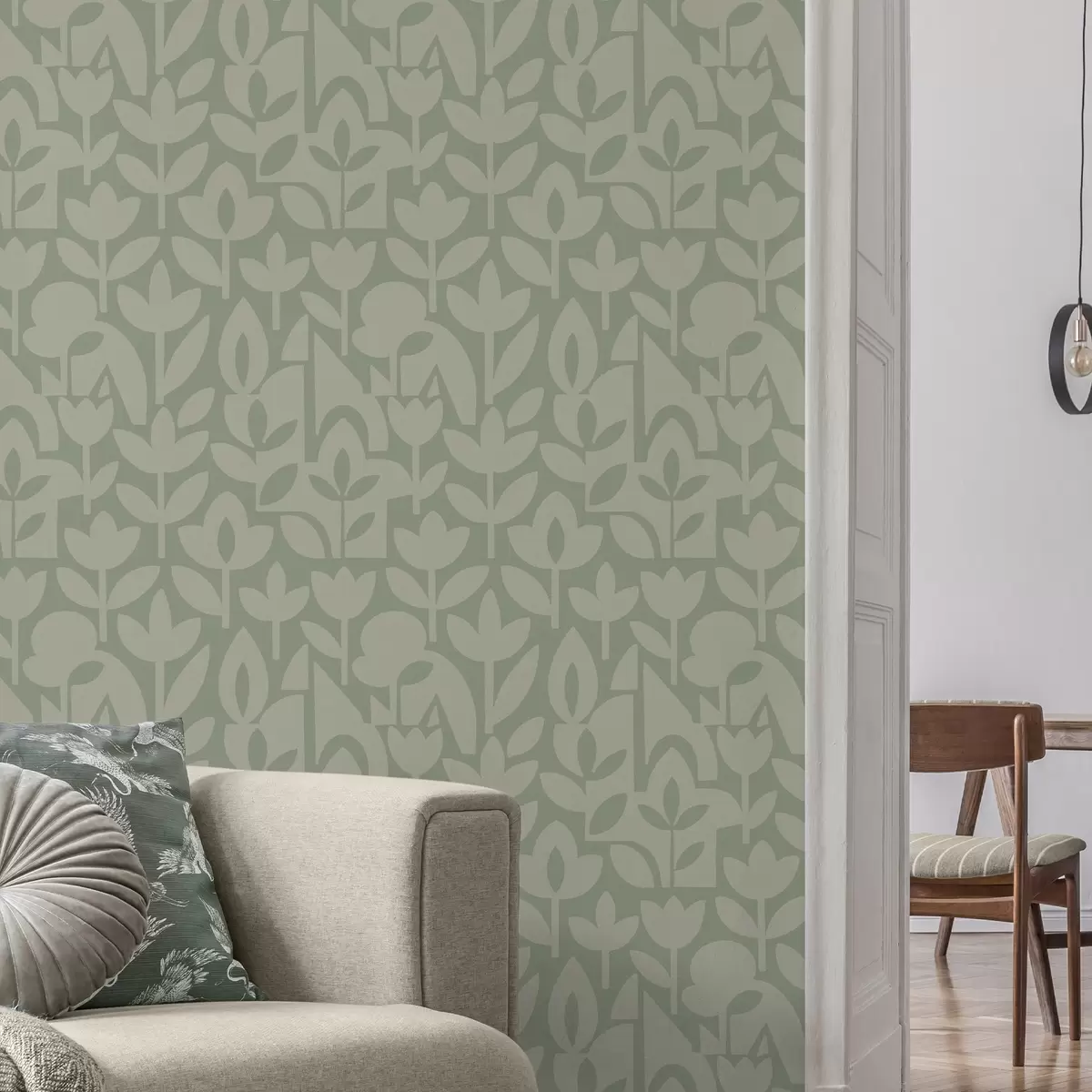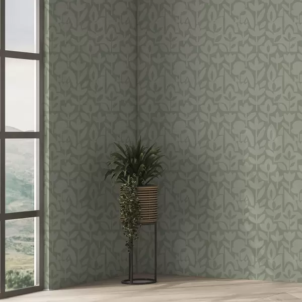Carta da parati Silhouette floreali geometriche in morbido salvia Nr. a00875v1
