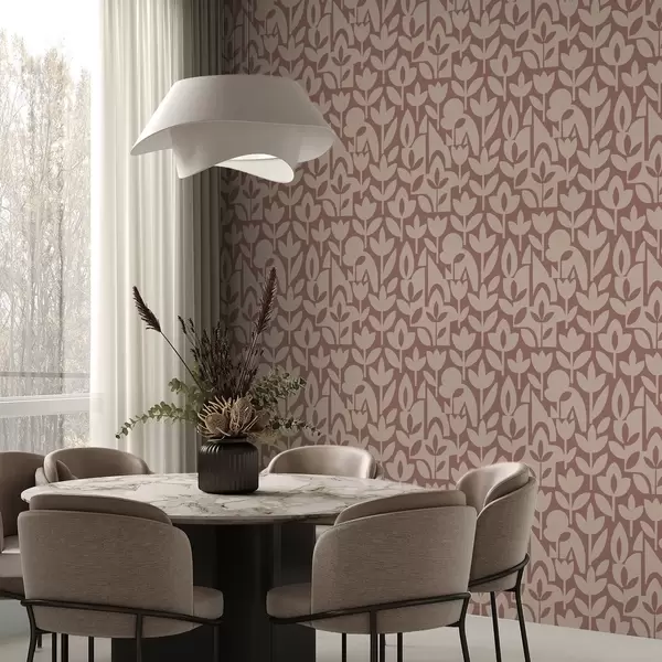 Carta da parati Silhouette floreali geometriche in terracotta e crema Nr. a00875v2