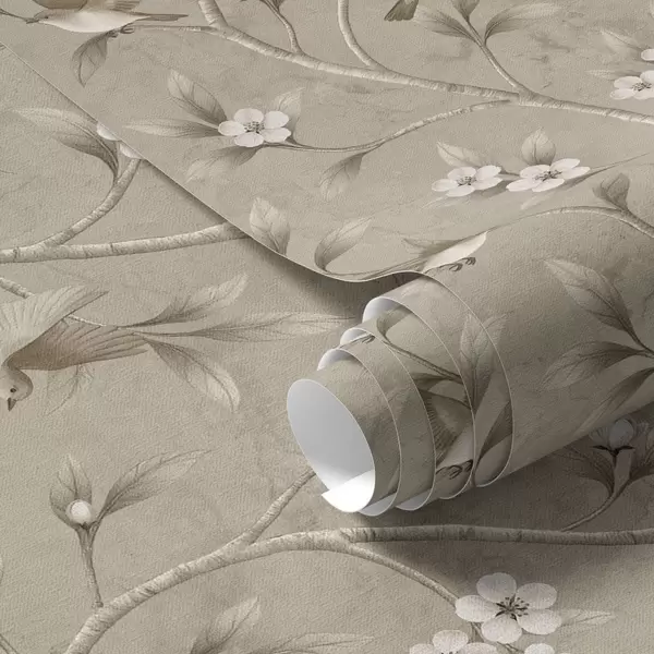 Carta da parati Uccelli e rami in fiore nei caldi toni seppia Nr. a00882