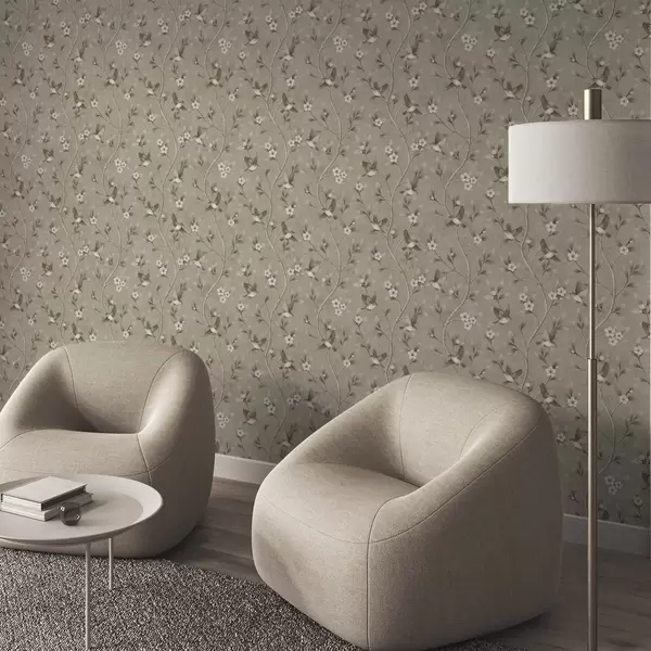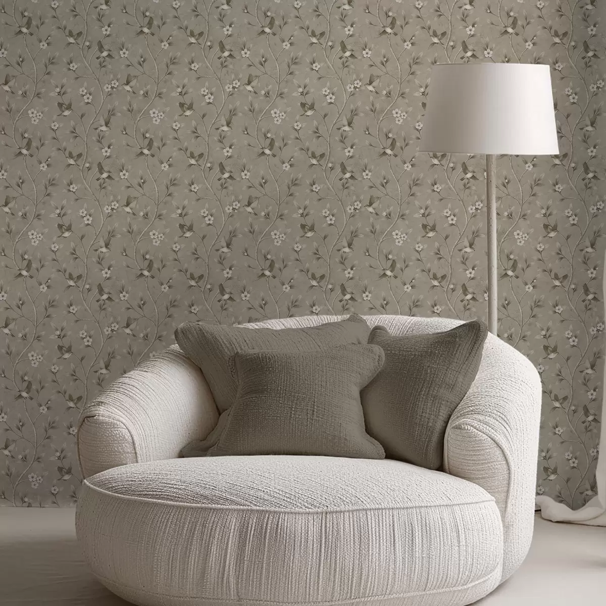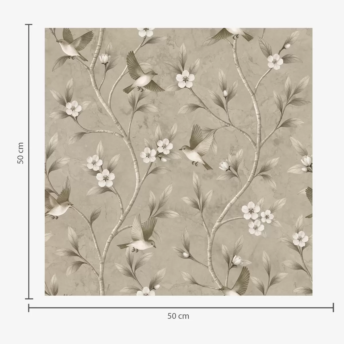 Carta da parati Uccelli e rami in fiore nei caldi toni seppia Nr. a00882