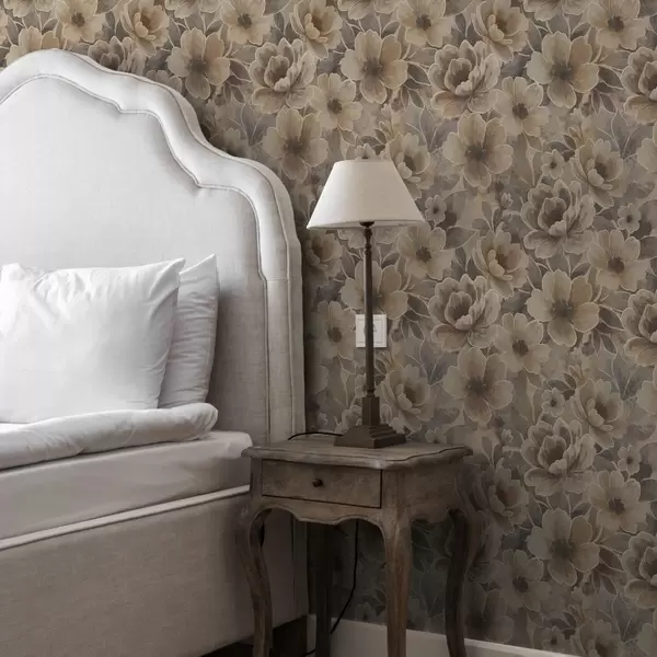 Carta da parati Fiori beige pittorici su uno sfondo astratto fumoso Nr. a00884