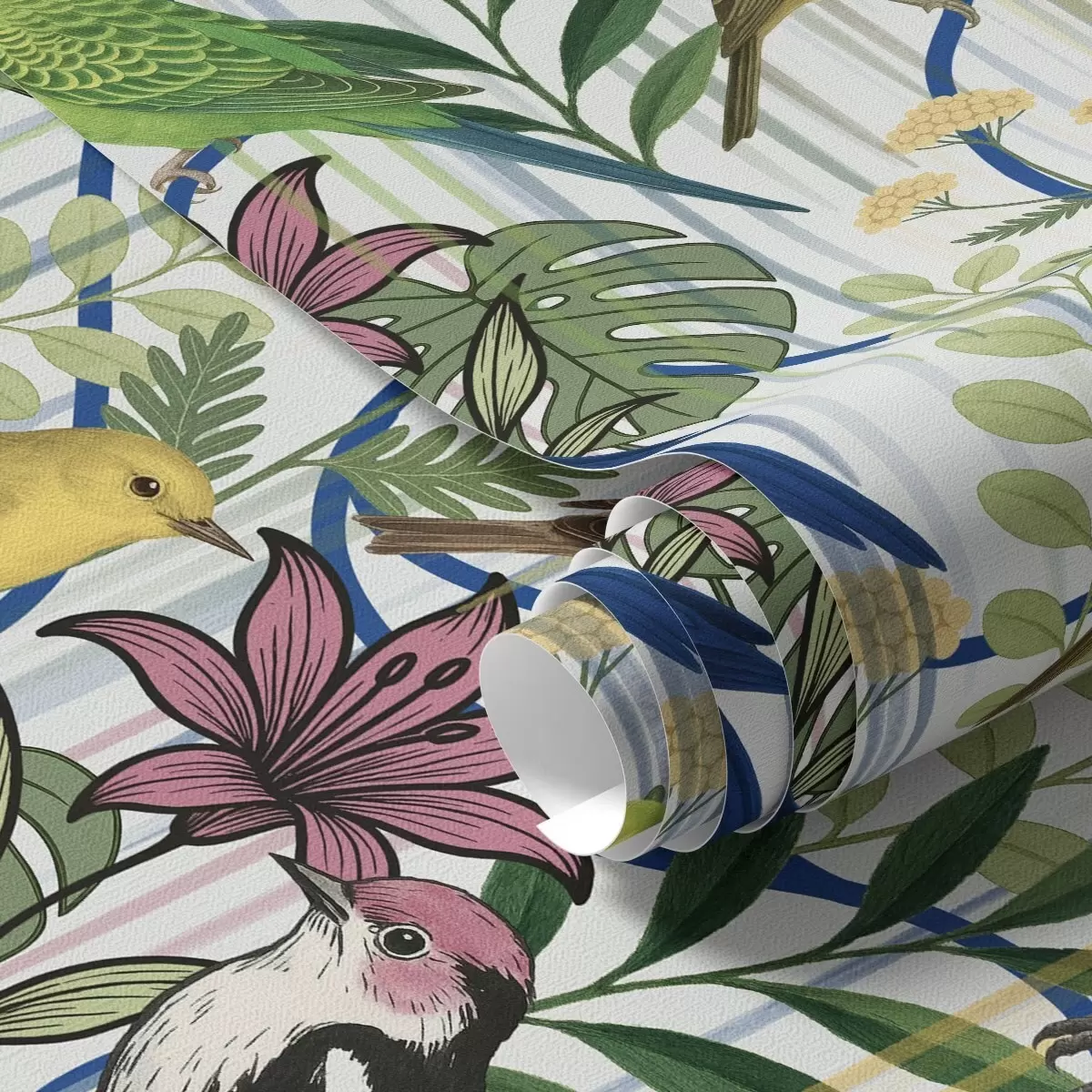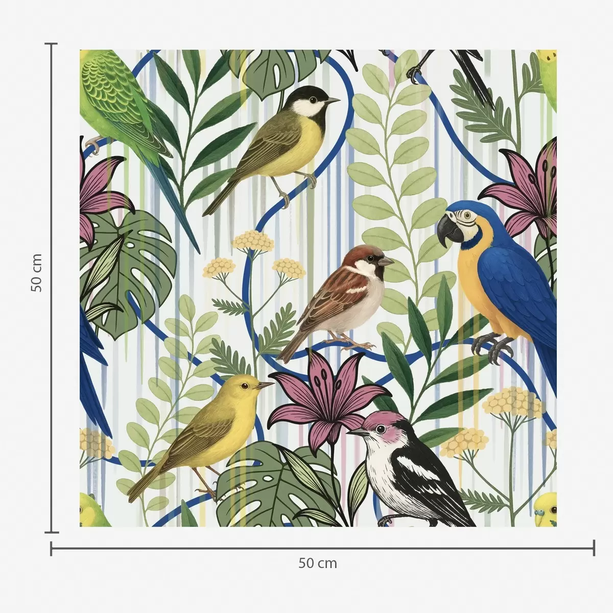 Carta da parati Uccelli esotici dai colori vivaci tra la vegetazione tropicale Nr. a00887