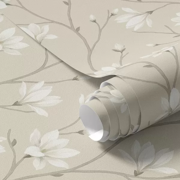Carta da parati Magnolie leggere su sottili rami beige Nr. a00890