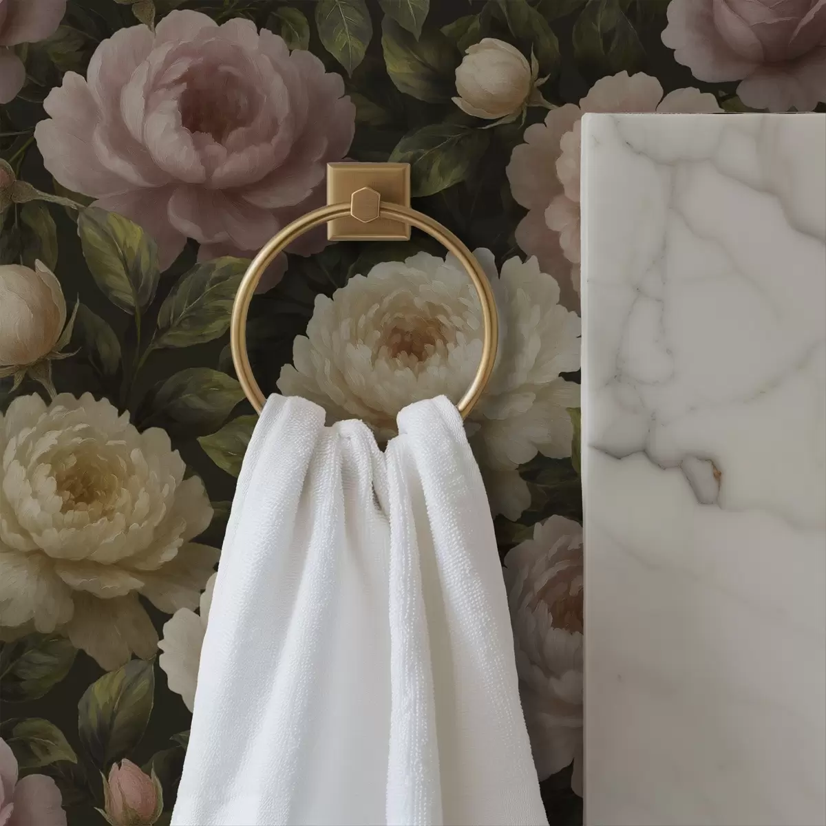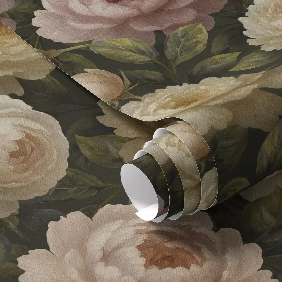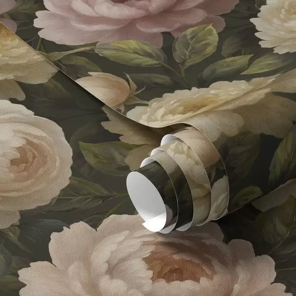Carta da parati Peonie romantiche su uno sfondo botanico scuro Nr. a00893