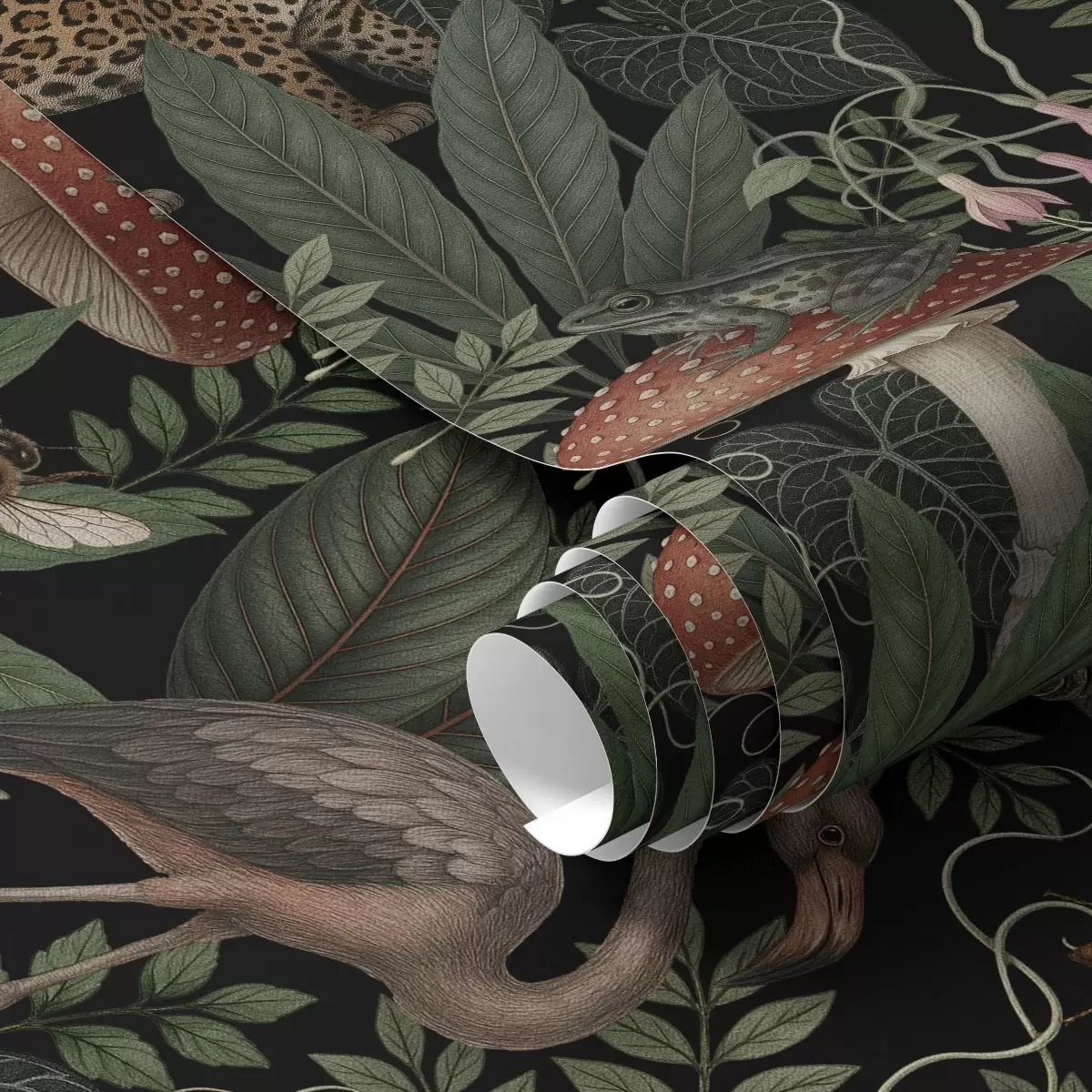 Carta da parati Abitanti notturni della giungla in una vegetazione rigogliosa e ricca di dettagli Nr. a00896