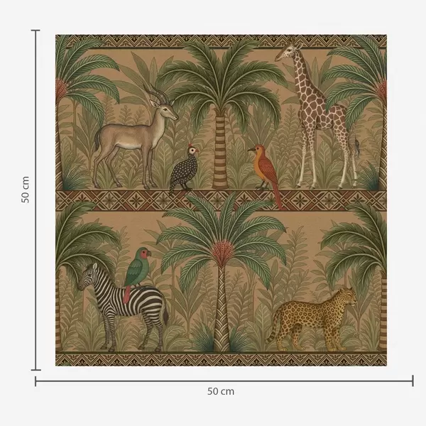 Carta da parati Animali decorativi della savana tra palme e bordure Nr. a00898