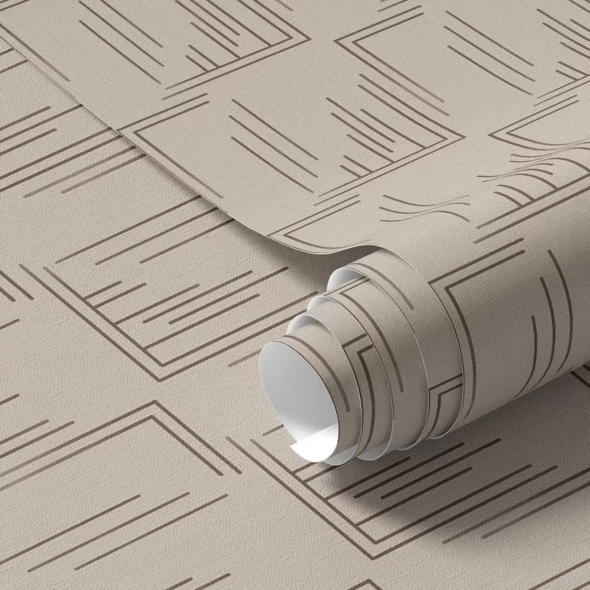 Carta da parati Quadrati angolari con linee in cacao su beige caldo Nr. a00910