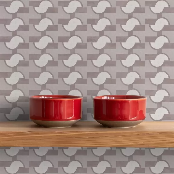 Carta da parati Piastrelle modulari color malva con semicerchi collegati Nr. a00915
