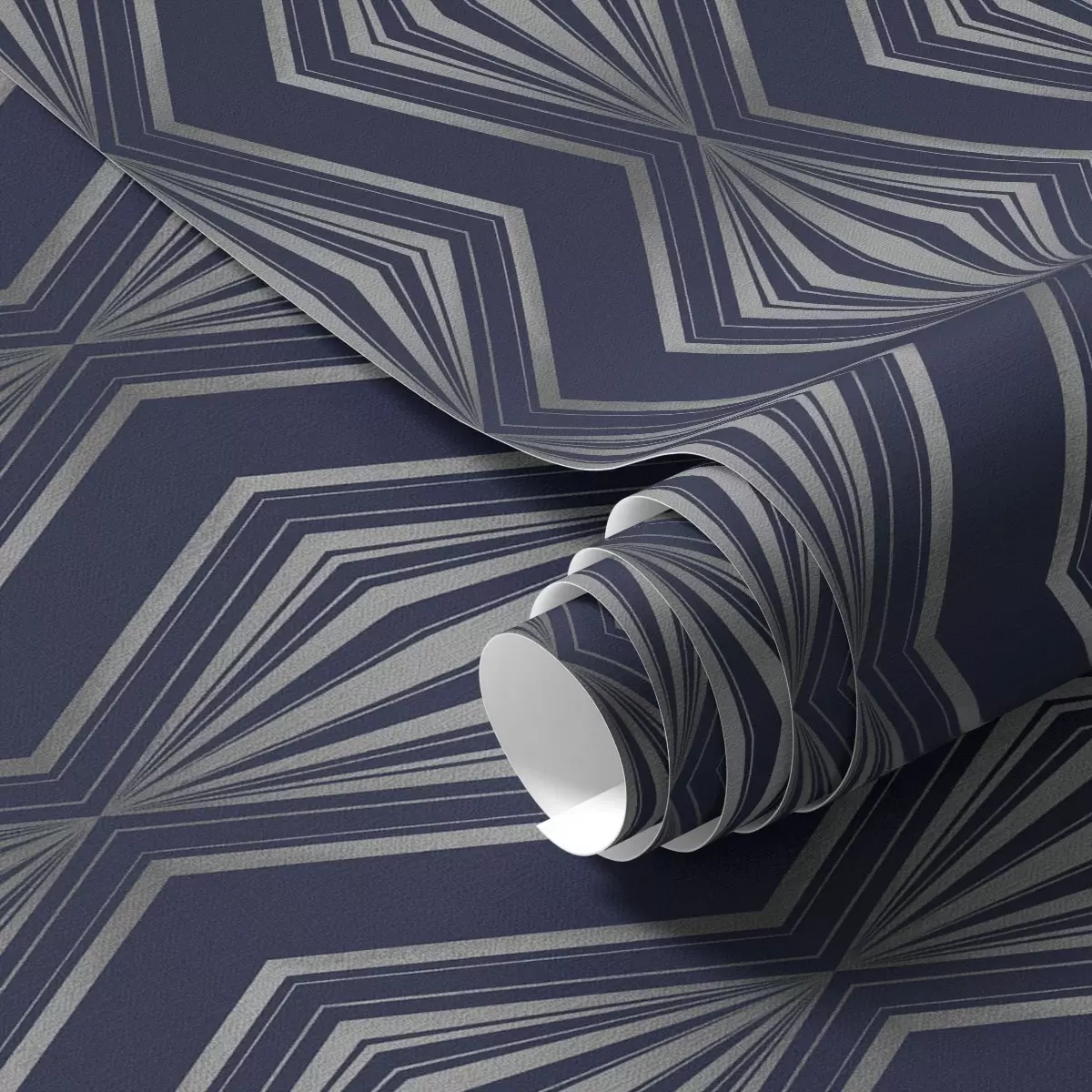 Carta da parati Diamanti geometrici a forma di raggi su sfondo blu scuro Nr. a00925
