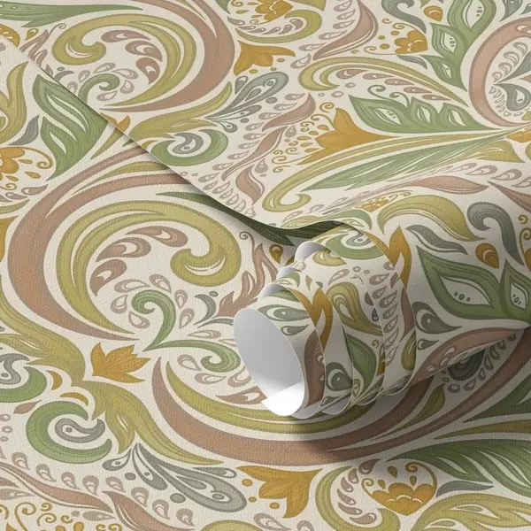 Carta da parati Volute ornamentali fogliate nei toni del verde e del terracotta Nr. a00927v1