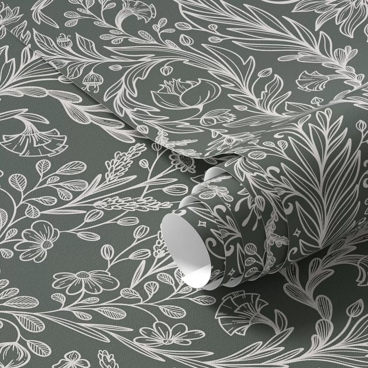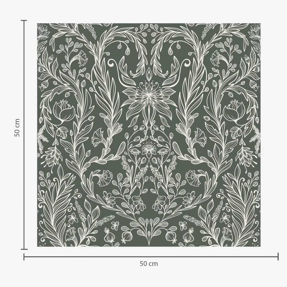Carta da parati Motivo floreale lineare su sfondo verde scuro Nr. a00929