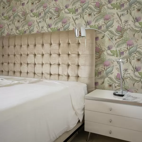 Carta da parati Boccioli di lillà e morbida vegetazione su sfondo color crema Nr. a00930v2