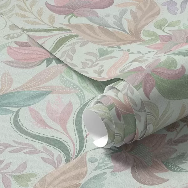 Carta da parati Motivi floreali pastello su uno sfondo color menta chiaro Nr. a00931v1