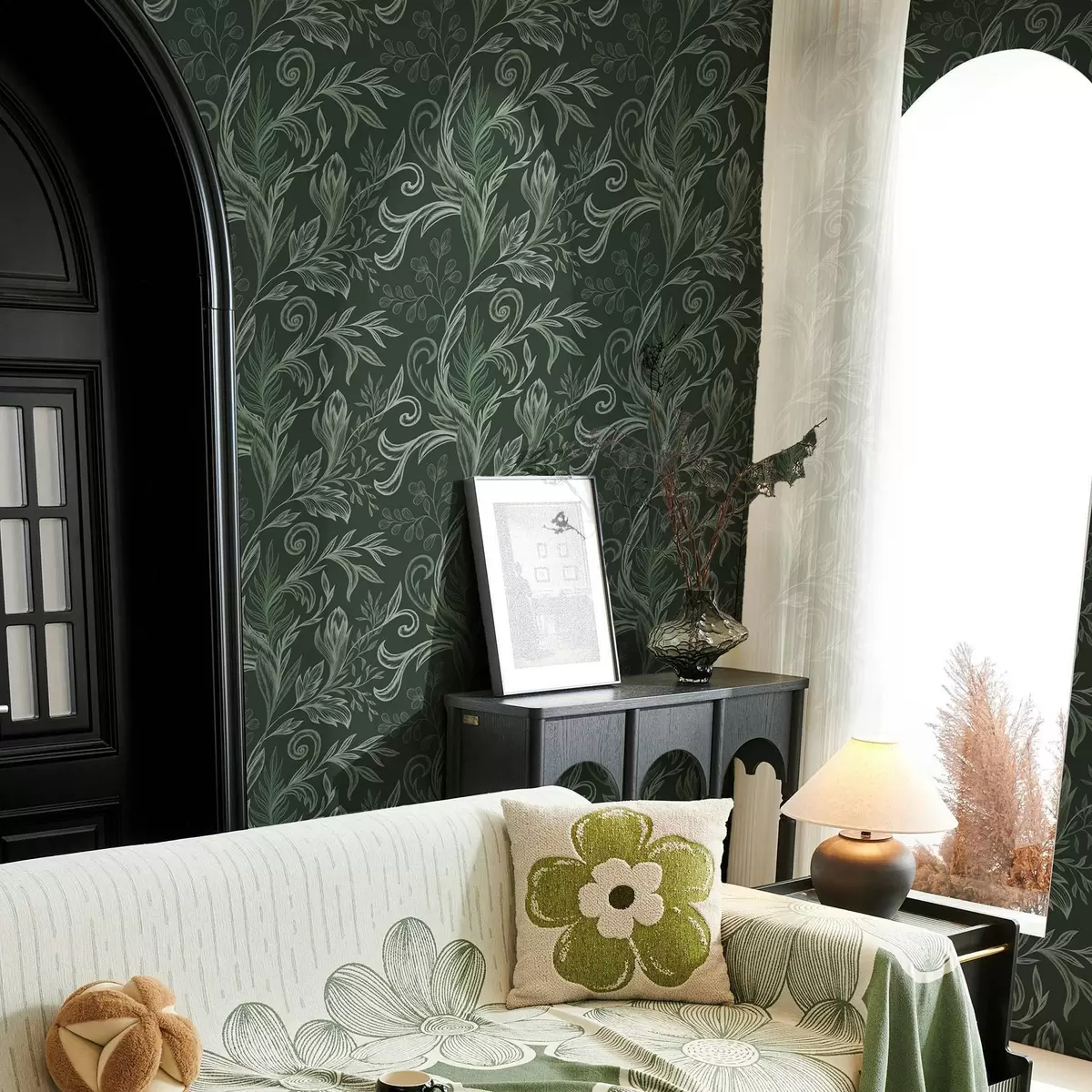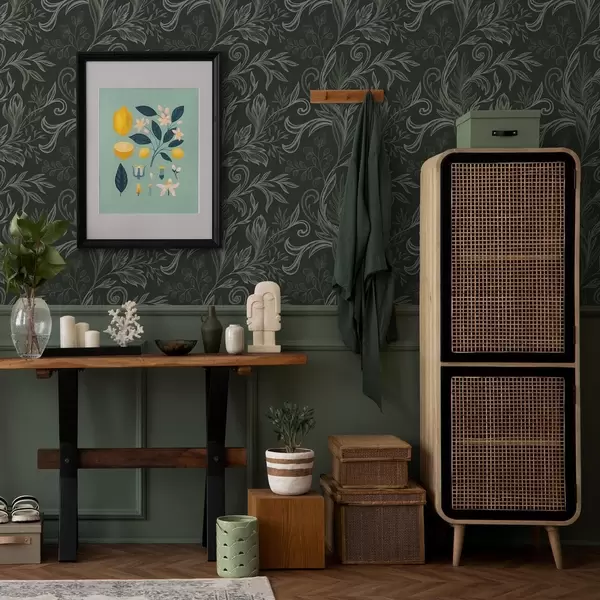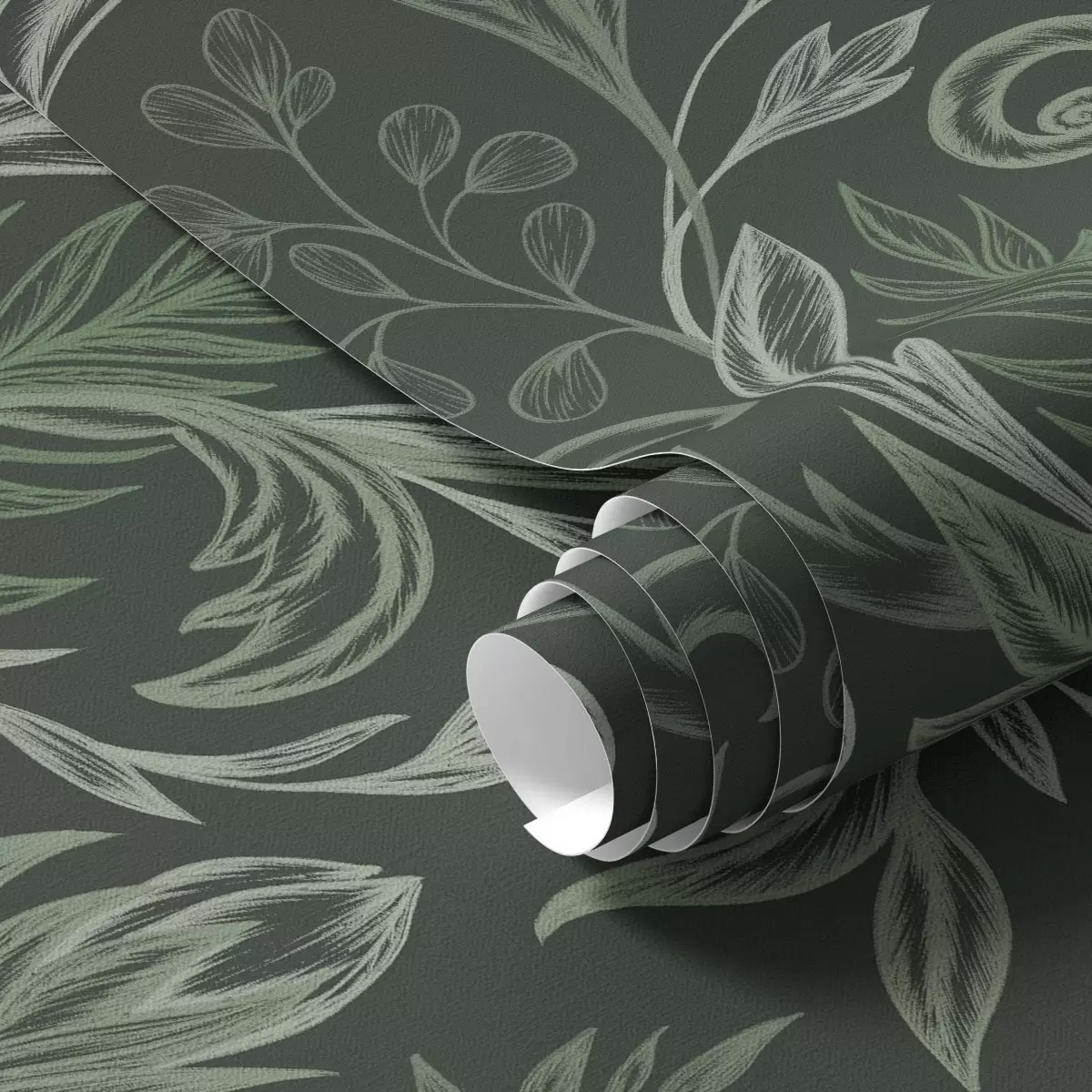 Carta da parati Foglie arricciate della foresta profonda nei toni del verde gessoso Nr. a00935v2