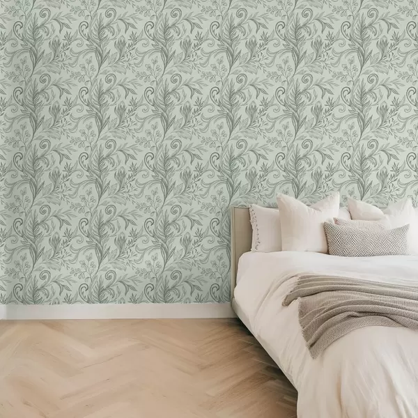 Carta da parati Foglie morbide di menta arricciate in delicate linee grigio-verdi Nr. a00935v3