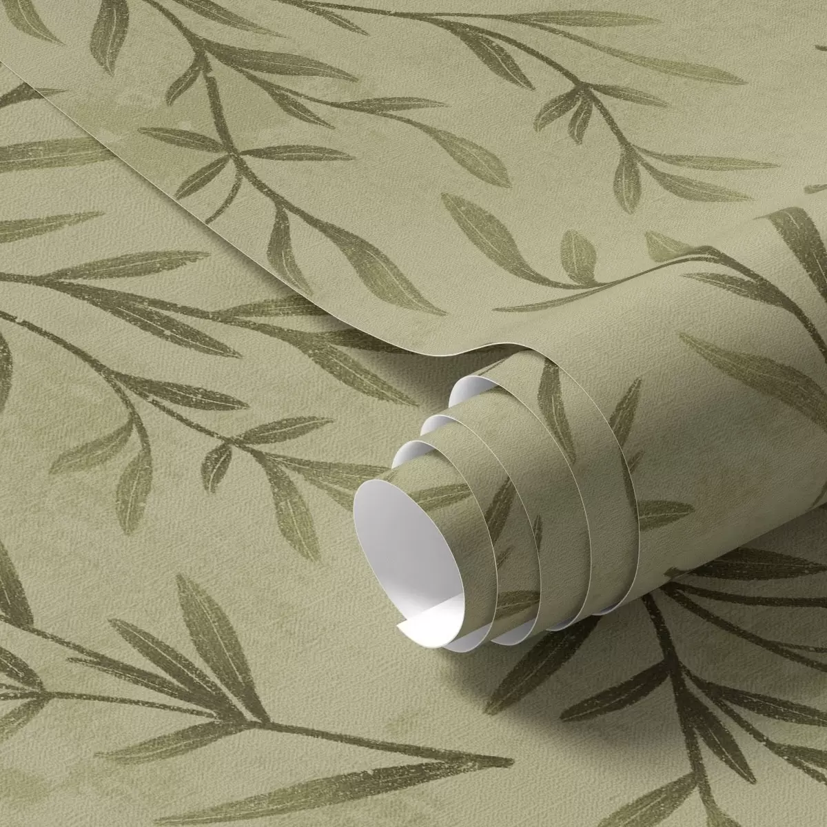 Carta da parati Rametti di ulivo su uno sfondo smerigliato giallo-verde Nr. a00936