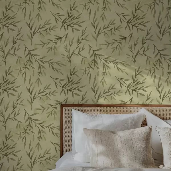 Carta da parati Rametti di ulivo su uno sfondo smerigliato giallo-verde a00936