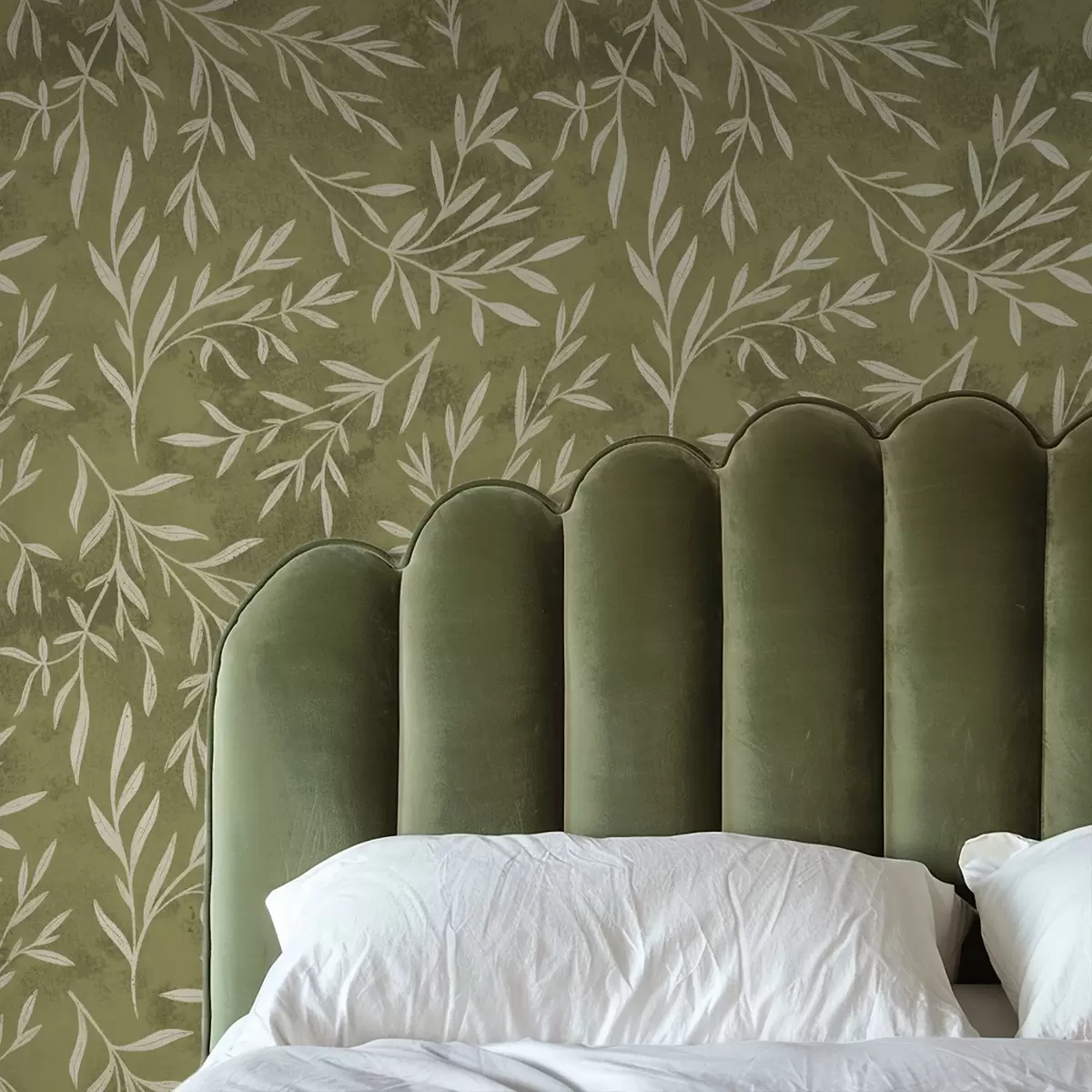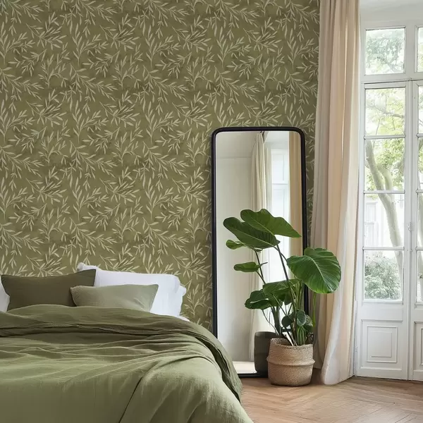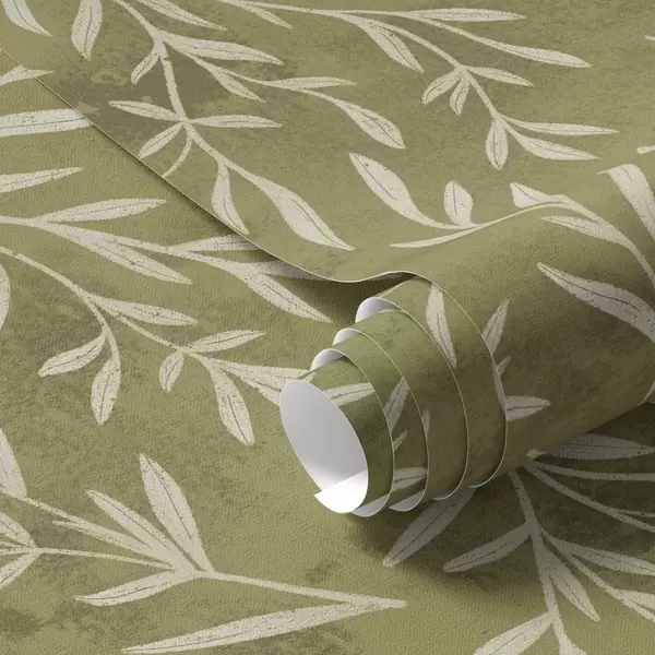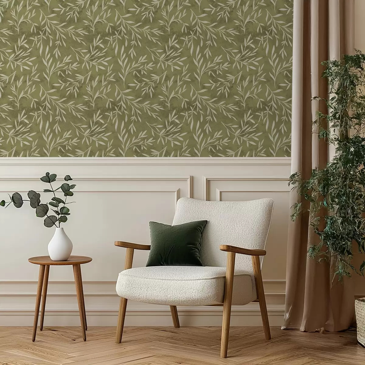 Carta da parati Rametti bianco crema su uno sfondo caldo con texture oliva Nr. a00936v1