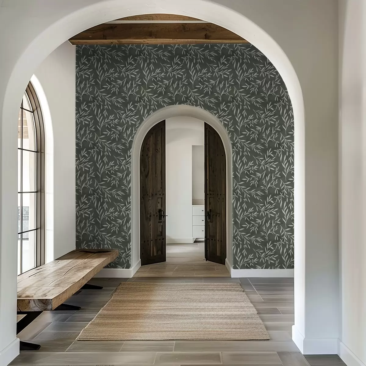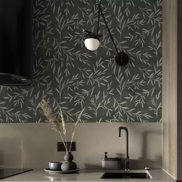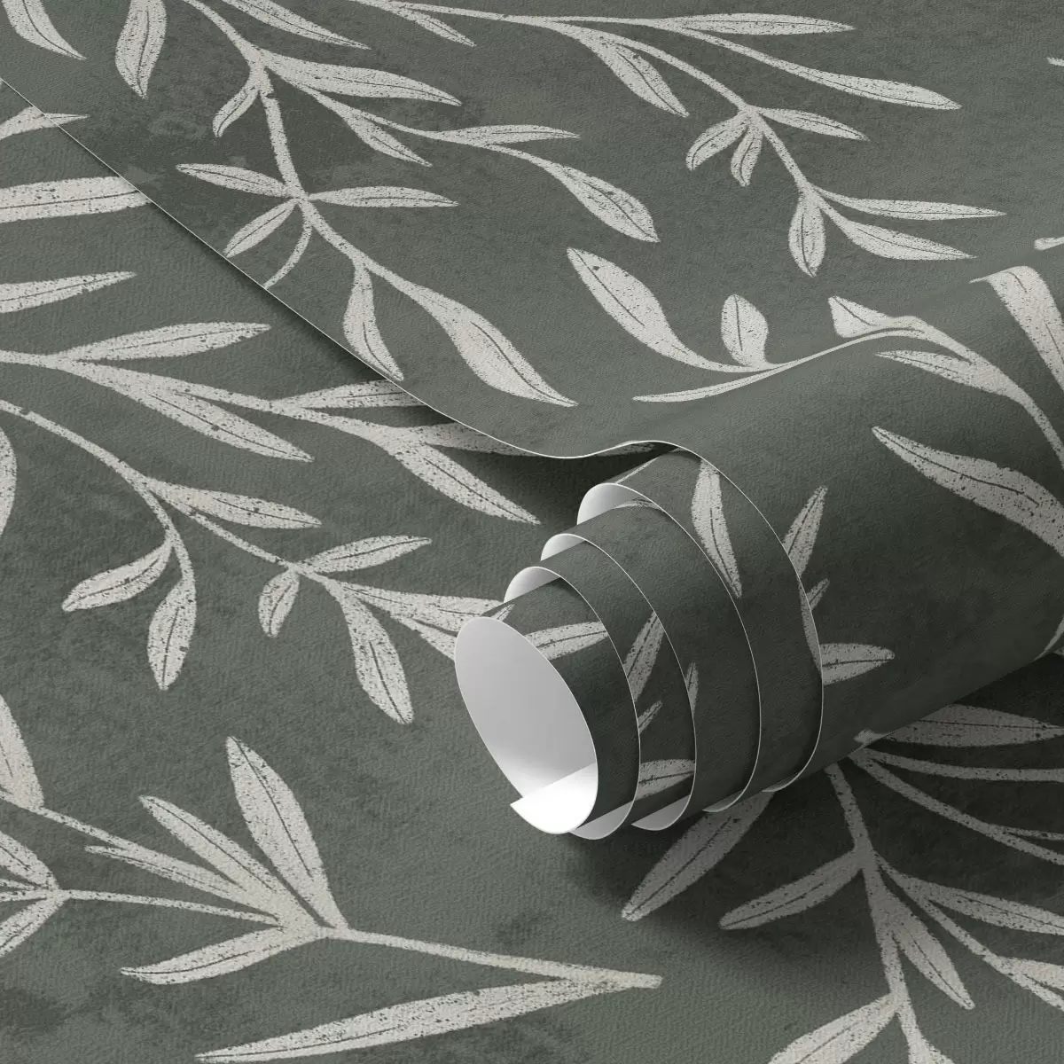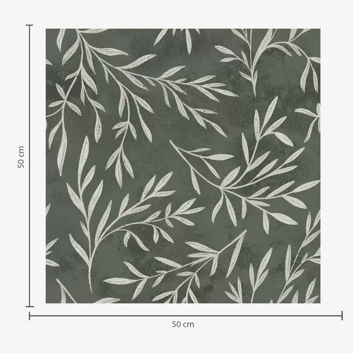 Carta da parati Rami bianchi abbozzati su uno sfondo verde salvia intenso Nr. a00936v2