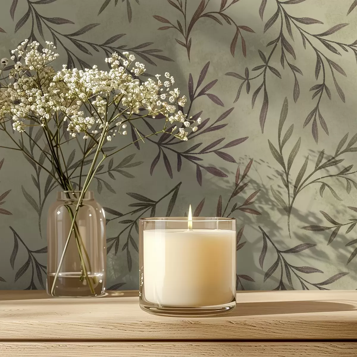 Carta da parati Rami di lillà e verde con foglie su uno sfondo caldo Nr. a00936v4