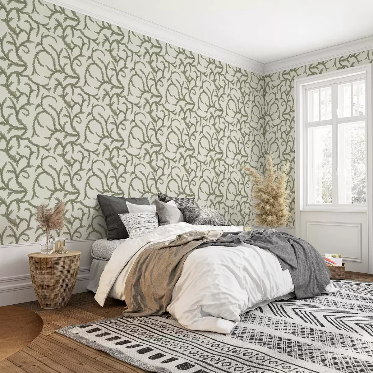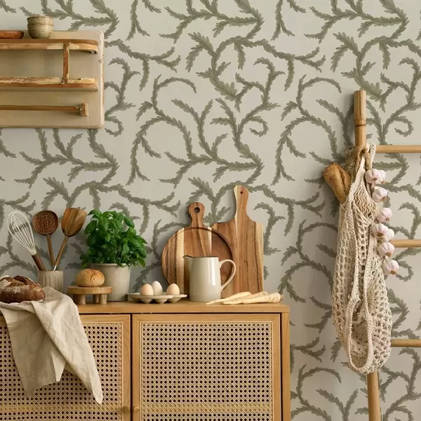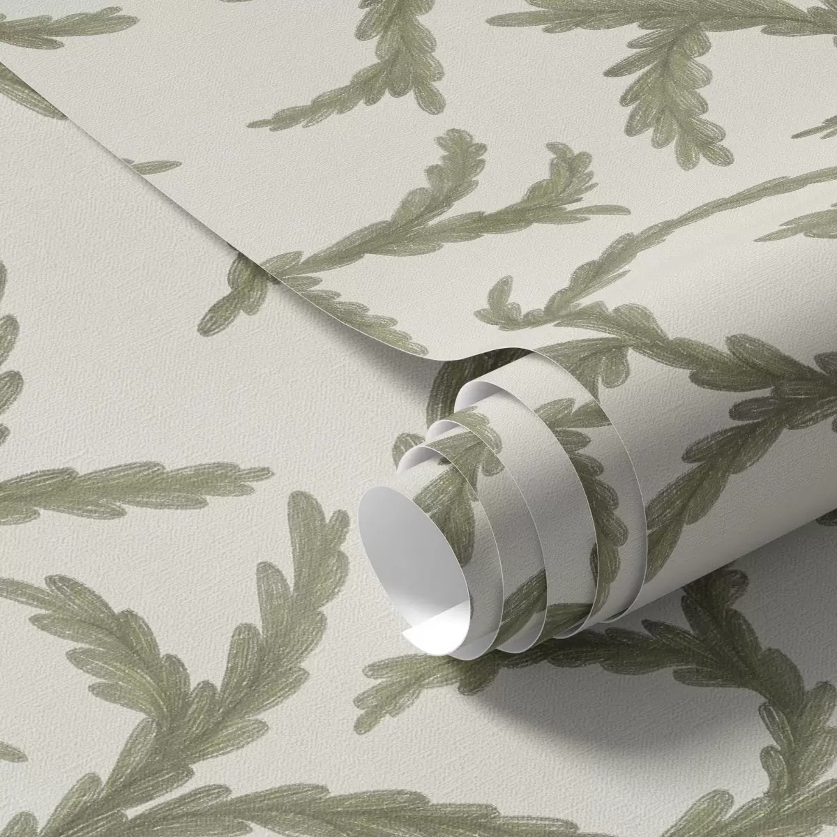 Carta da parati Morbidi riccioli verdi di conifere su sfondo chiaro Nr. a00938