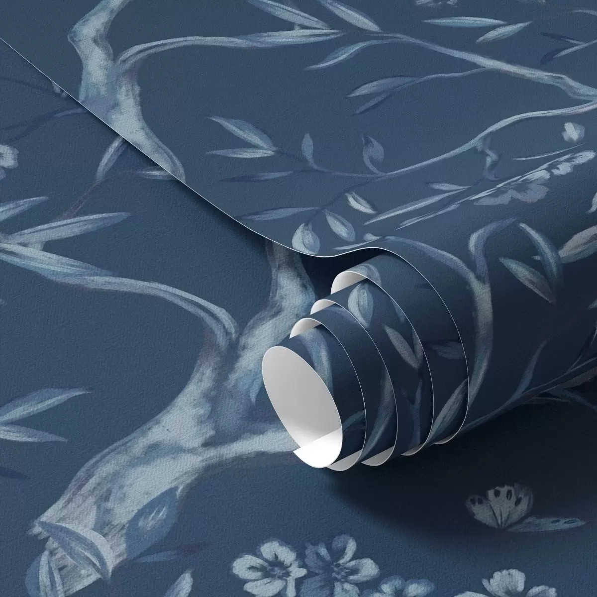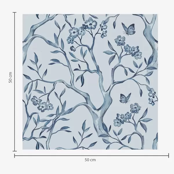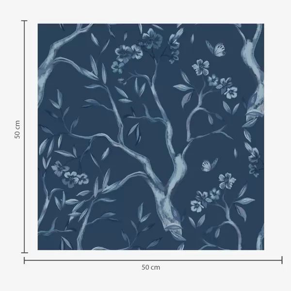 Carta da parati Rami fioriti blu con farfalle su sfondo scuro Nr. a00951v1