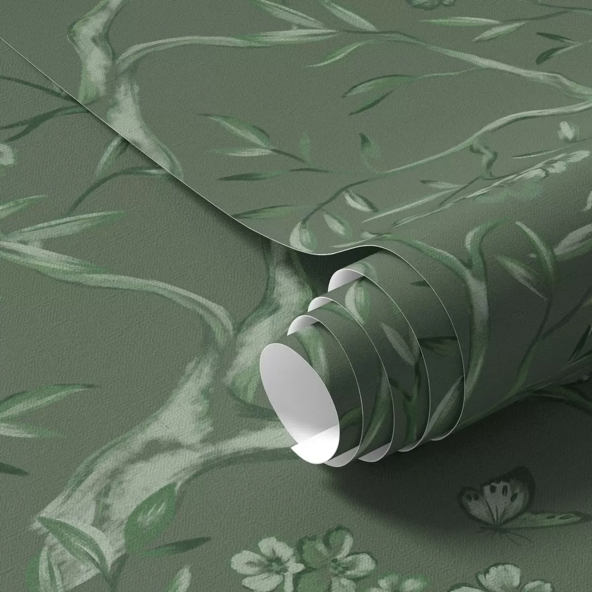 Carta da parati Rami fioriti verdi con farfalle su uno sfondo scuro Nr. a00951v3